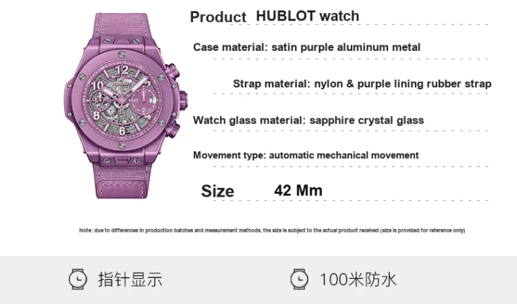 HUBLOT Big Bang Автоматический Механический Часы Мужские Часы Фиолетовый Циферблат Часы Алюминиевый Корпус Часы Нейлоновый Ремешок