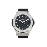 HUBLOT Classic Fusion Кварцевый механизм Мужские часы Часы 33 мм Черный циферблат Титановый сплав Корпус часов Резиновый ремешок