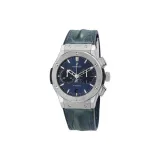 HUBLOT Автоматический Механический Часы Мужские Циферблат 45 мм Синий Титан Корпус Кожаный Ремешок