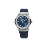 HUBLOT Classic Fusion Collection Кварцевый механизм Женские часы 33 мм Синий циферблат Титан Корпус Часы Резиновый ремешок