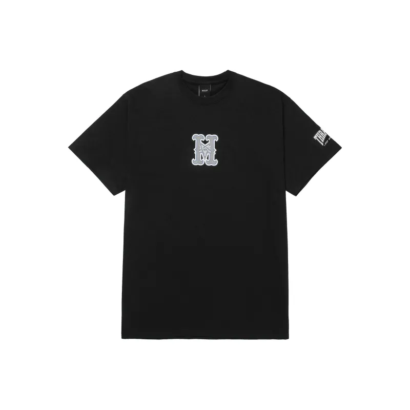 HUF Круглый вырез Облегающий Прямой крой Короткий рукав Т-рубашка Мужская Черная