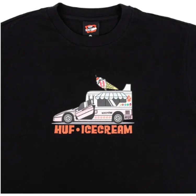 Мороженое ICECREAM X HUF Co Branded SERIES Черная Унисекс T Рубашка