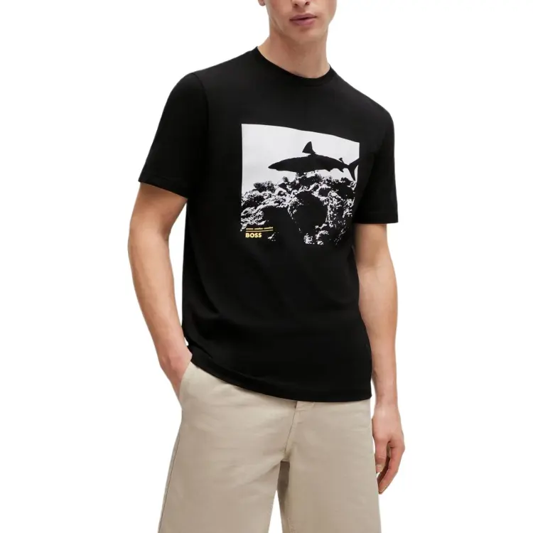 Hugo Boss Хлопок Джерси Регулярный крой Рубашка с Сезонным принтом Рубашка Мужская Черная
