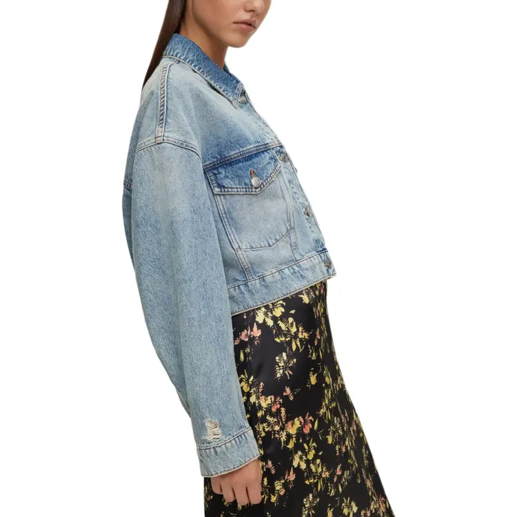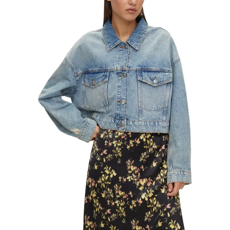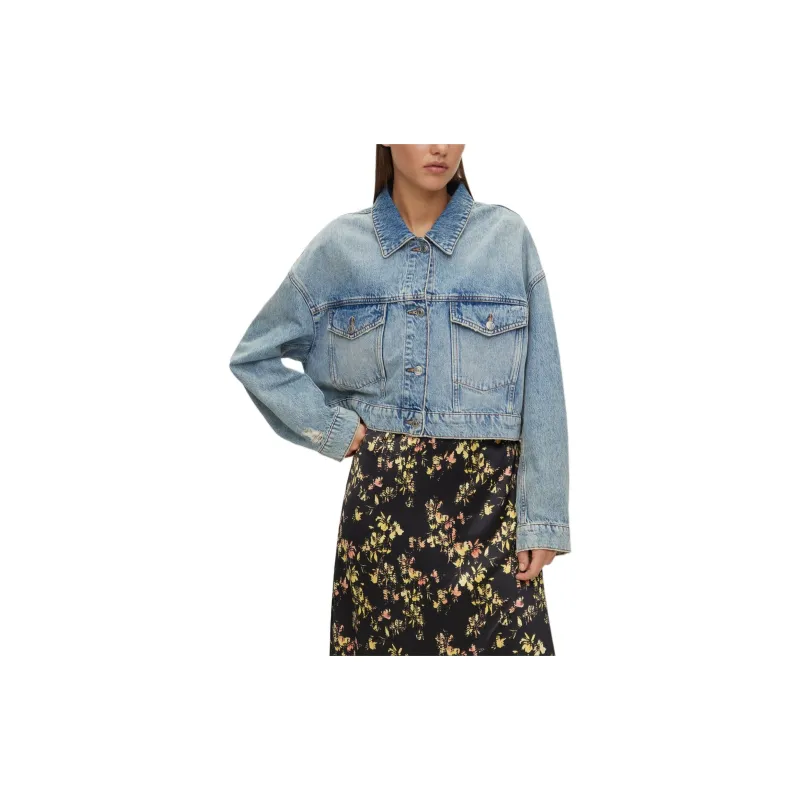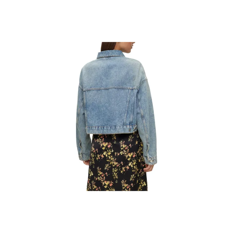 Hugo Boss Укороченная куртка из синего жесткого денима с деталями из стразов куртки и пальто женские синий