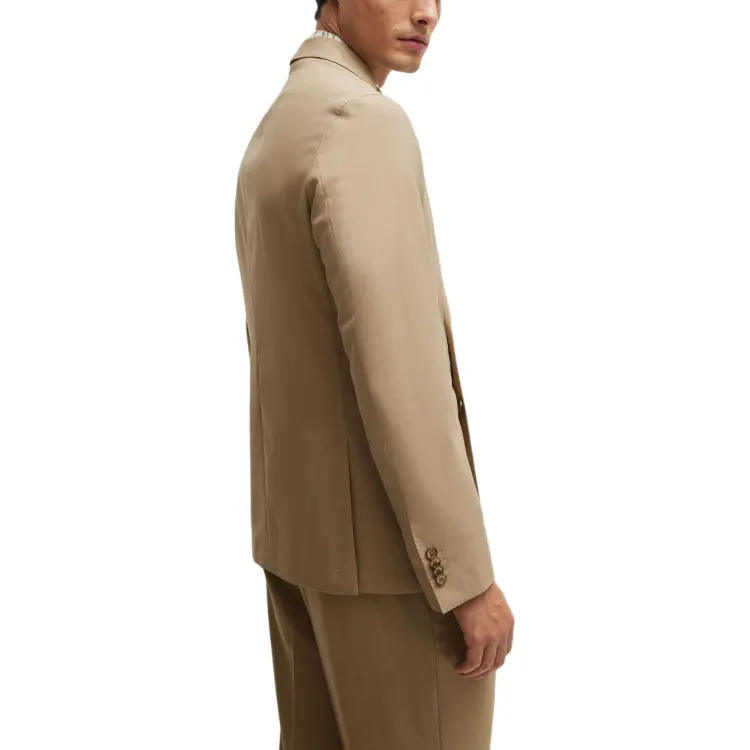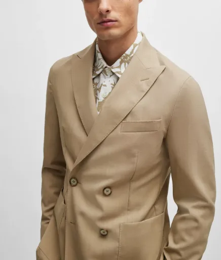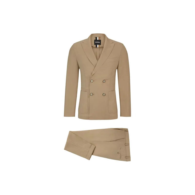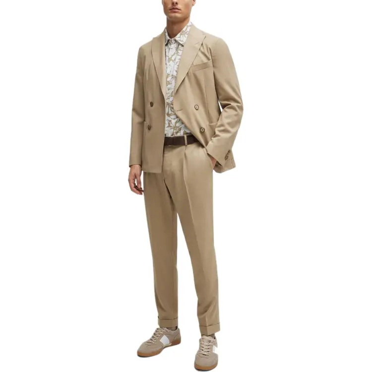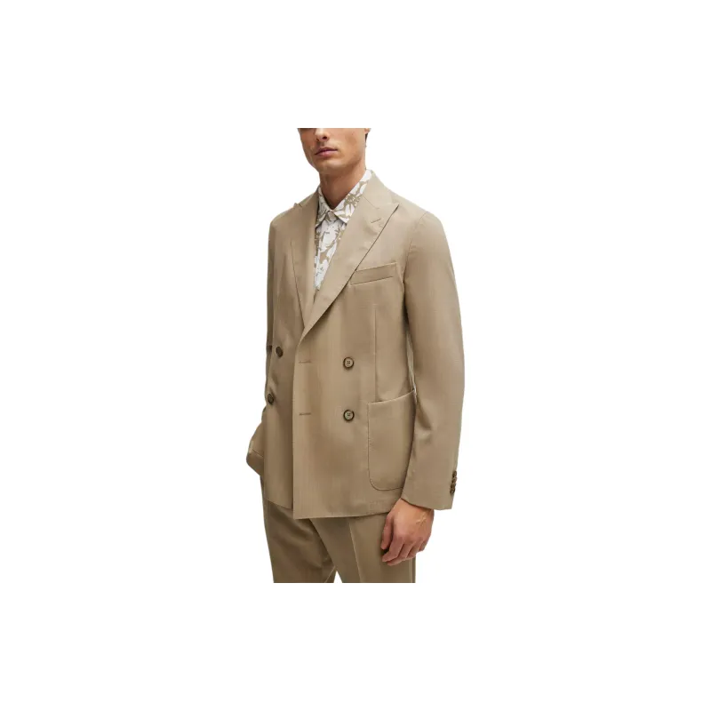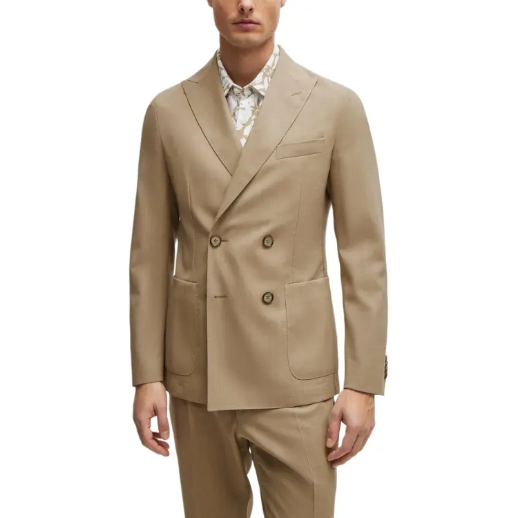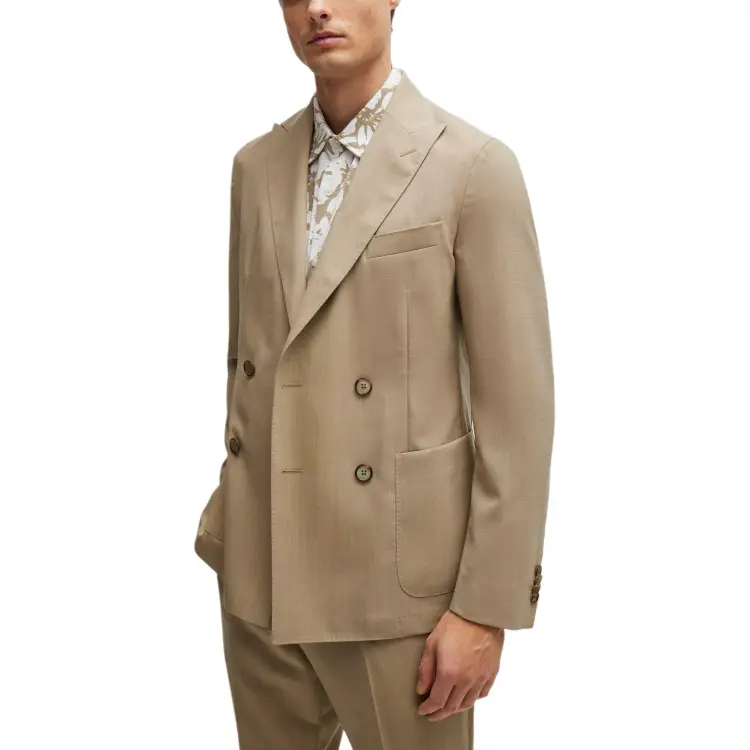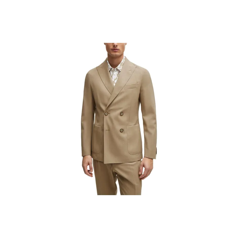 Hugo Boss Двойной Breasted Облегающий крой Костюм из новой шерсти Бизнес Костюм Мужской Умбра