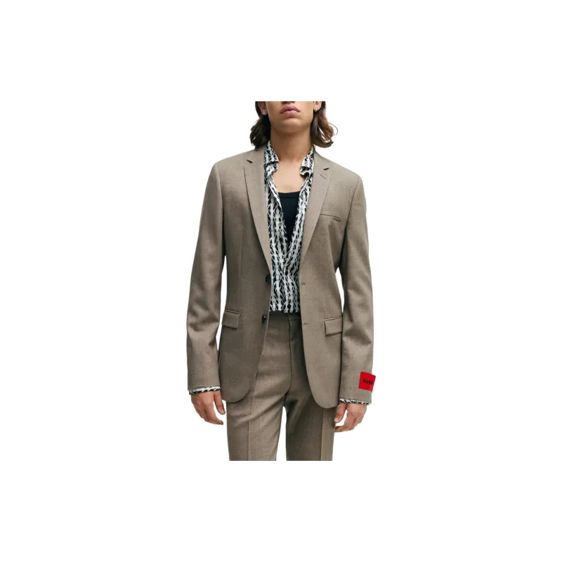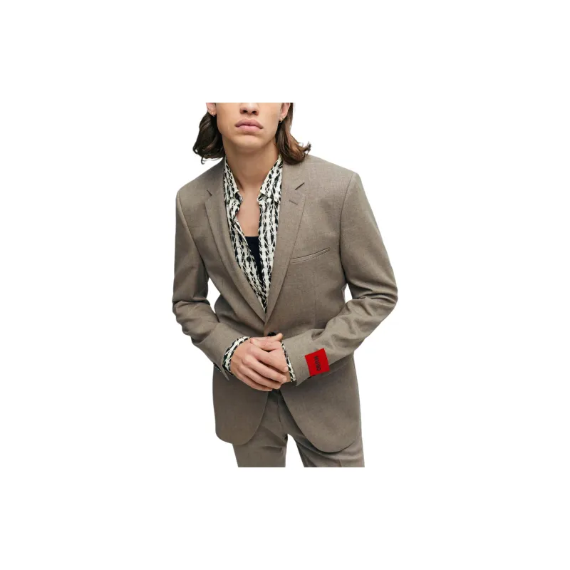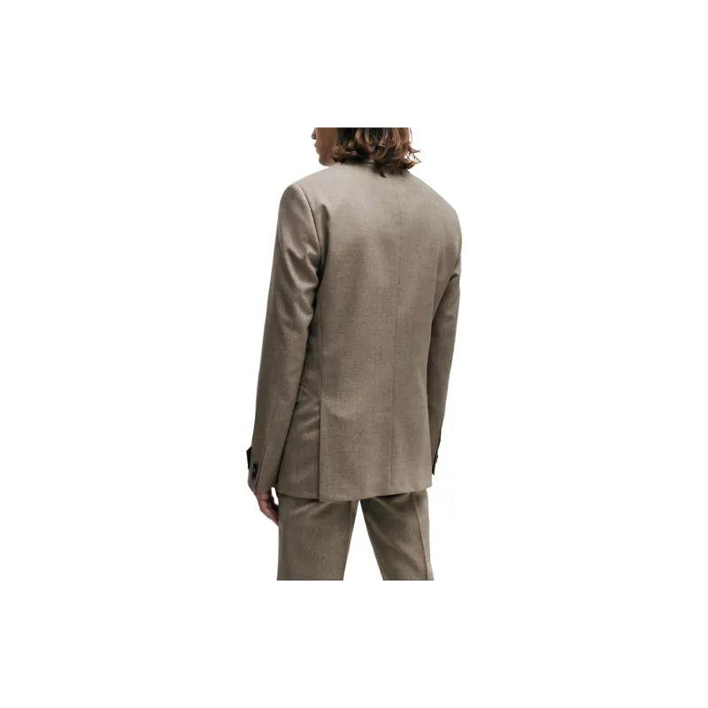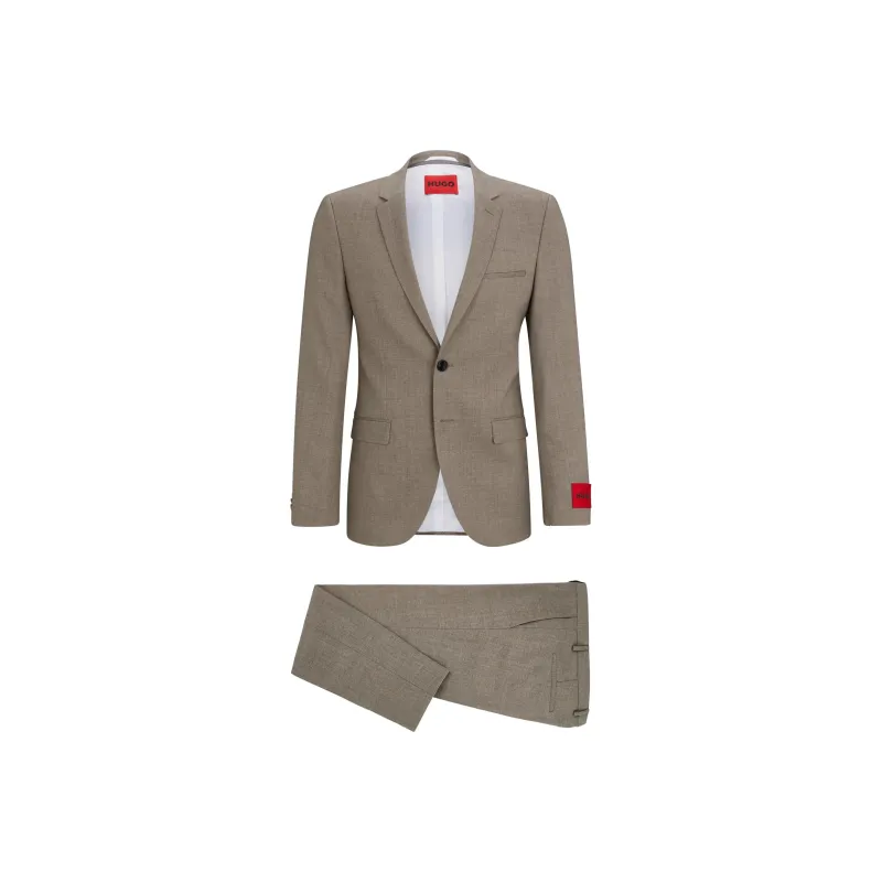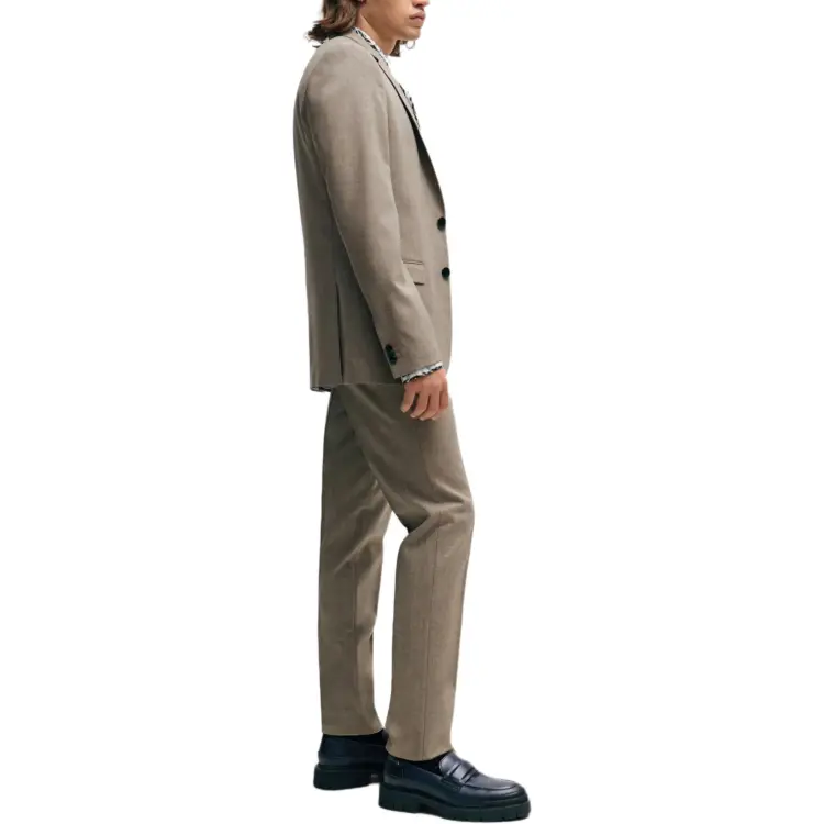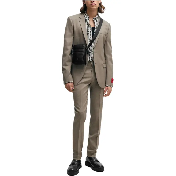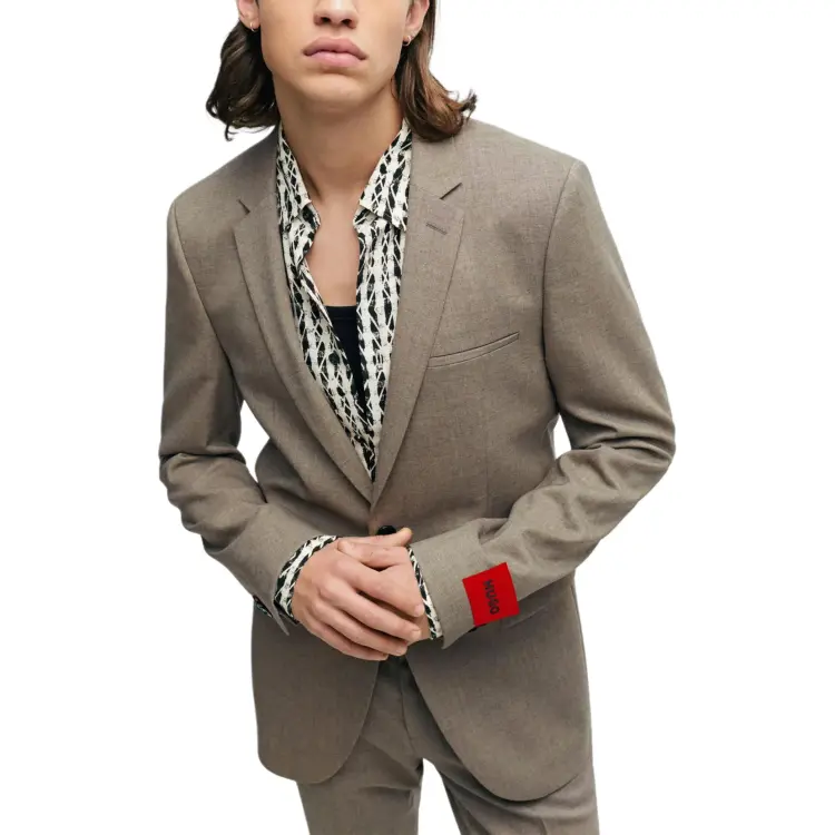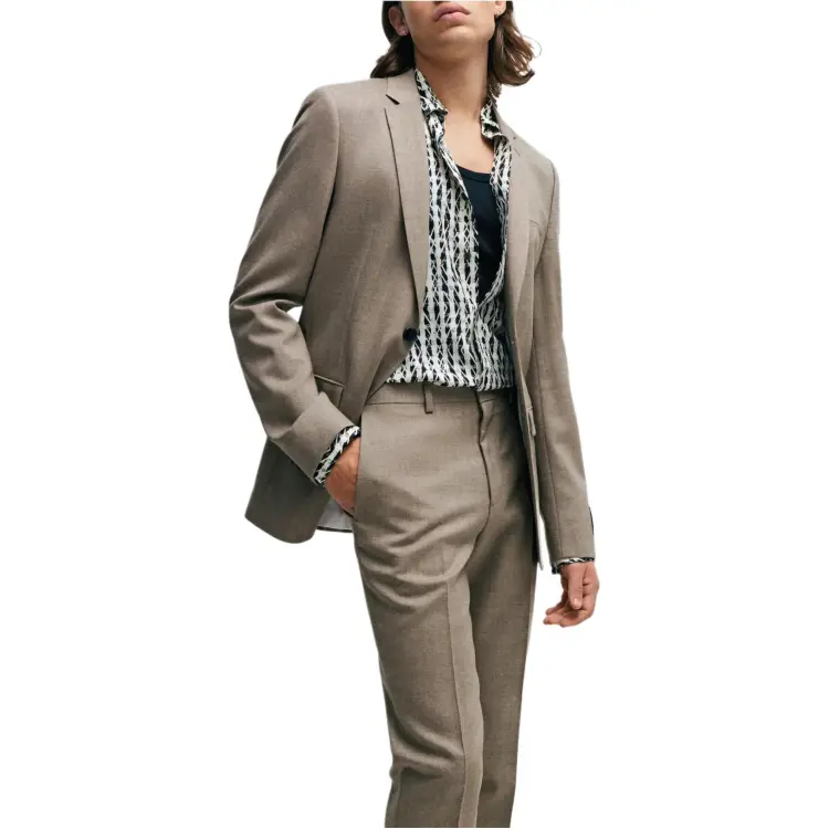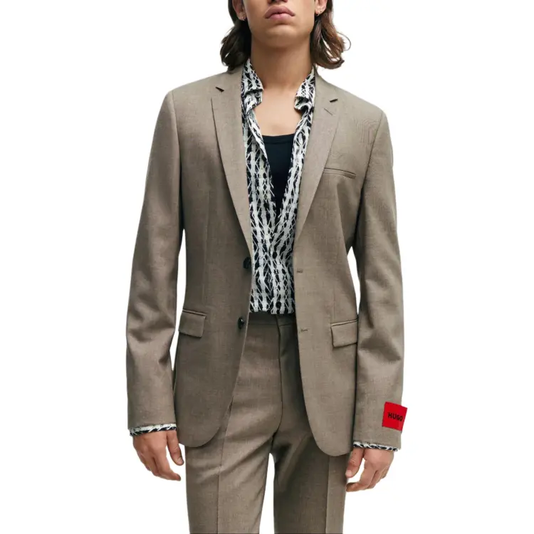 Hugo Boss Extra Облегающий крой Костюм В узоре Смесовая шерсть Холст Бизнес Костюм Мужской Светлый Бежевый