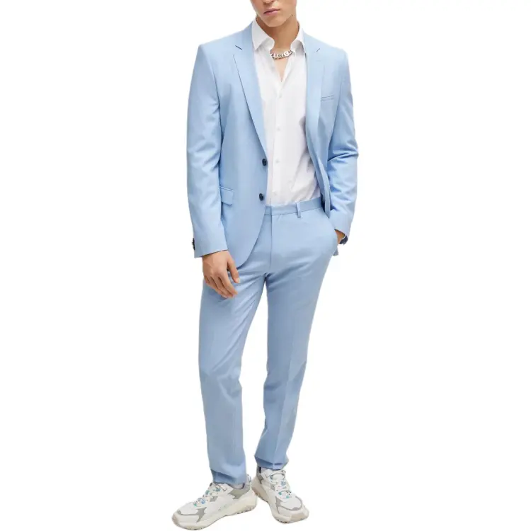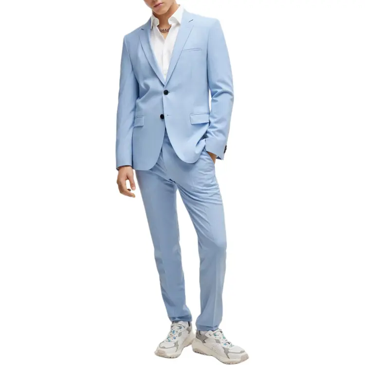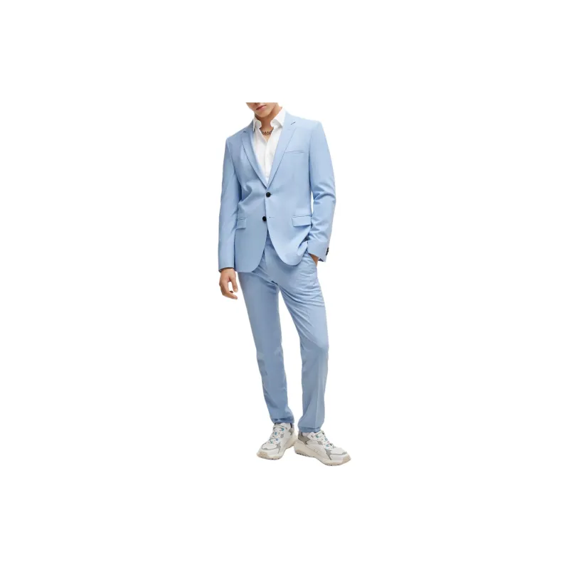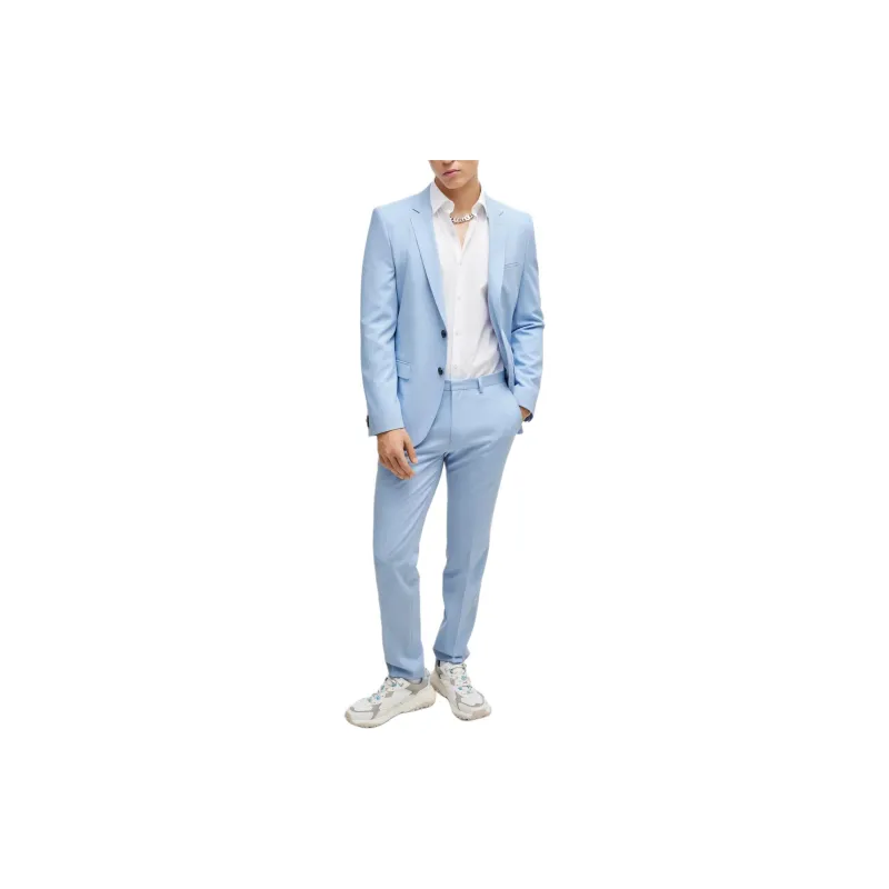 Hugo Boss Extra Slim Fit Костюм с эластичной тканью для выступлений Бизнес костюм Мужской Светло-синий