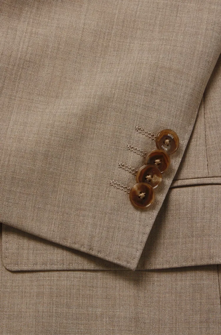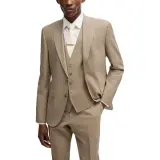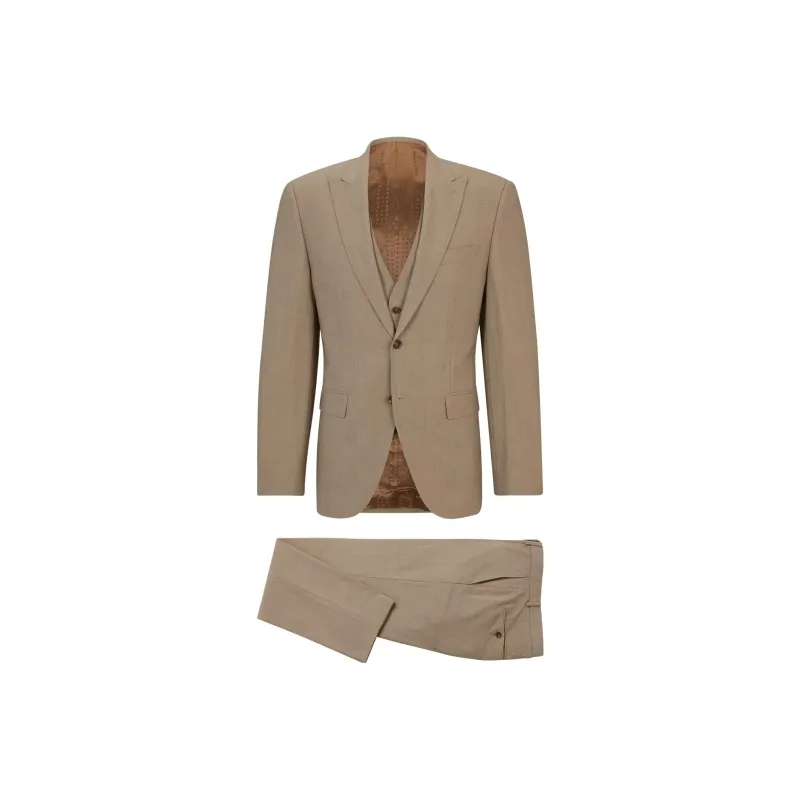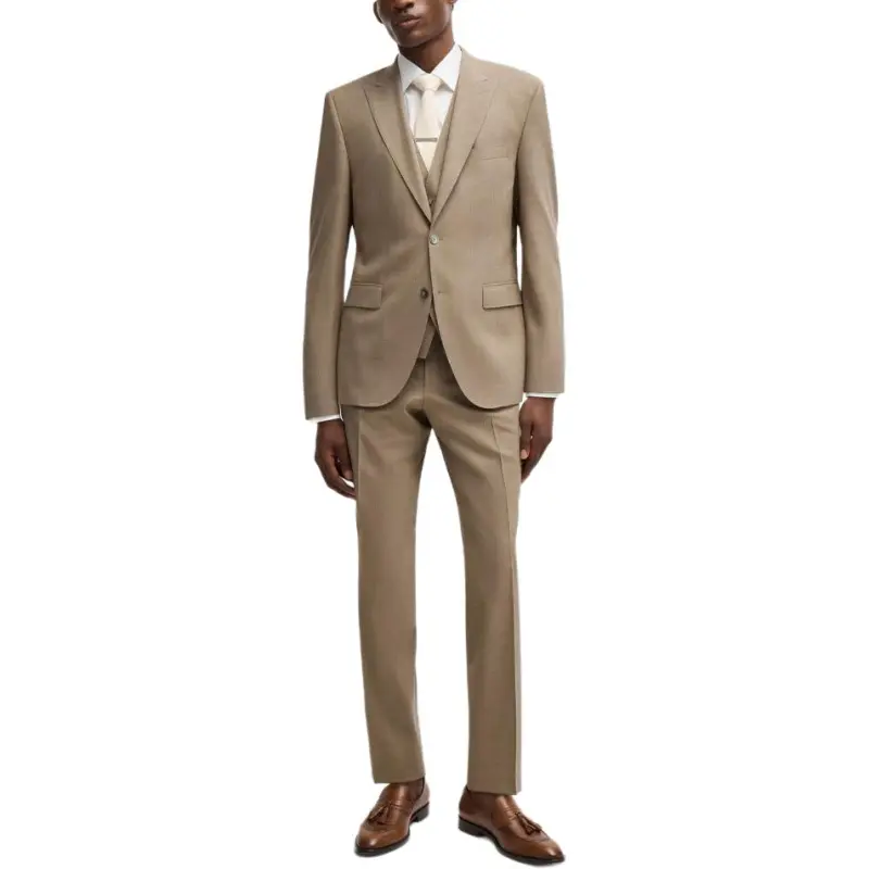 Hugo Boss FW23 Обычный крой костюм из устойчивой к складкам эластичной шерсти бизнес-костюм для мужчин цвет хаки