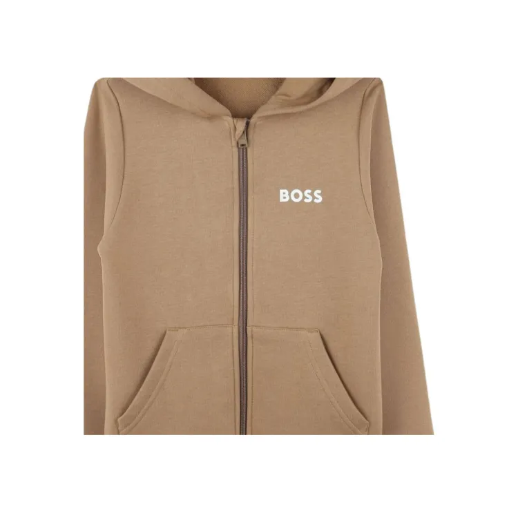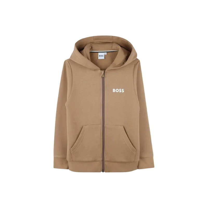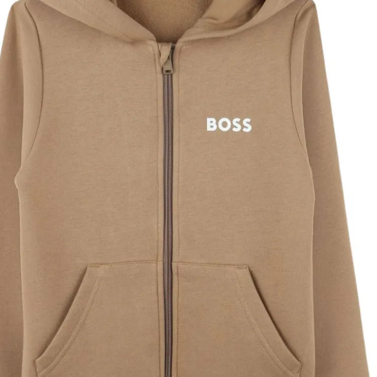 Hugo Boss Детская одежда Однотонный Накладной карман с молнией С капюшоном Длинный рукав Миндально-бежевый Детский