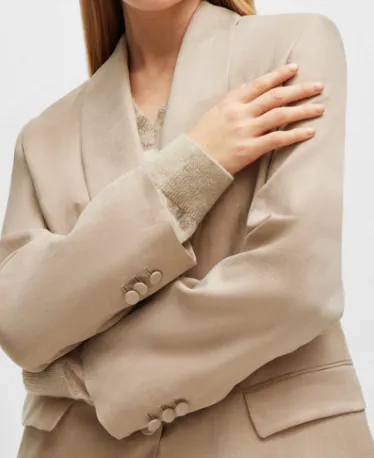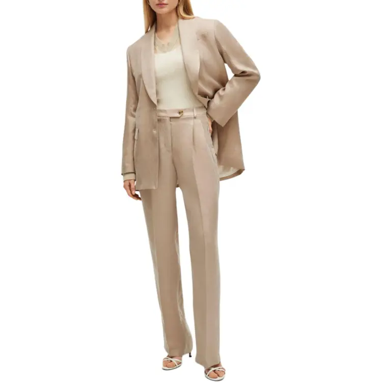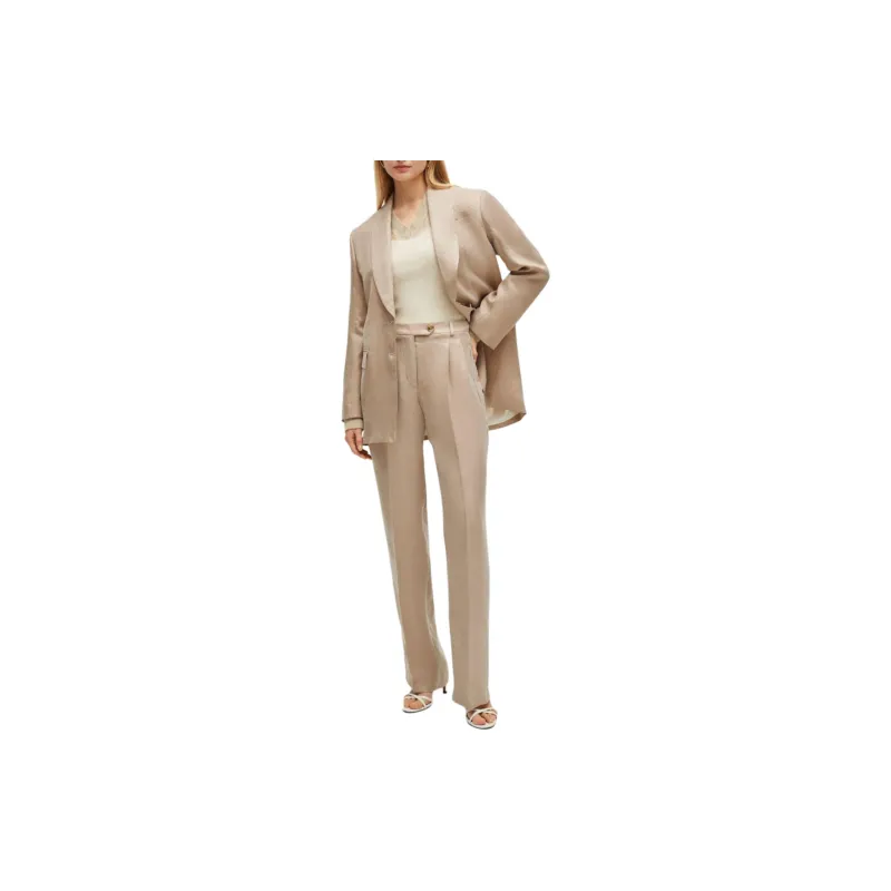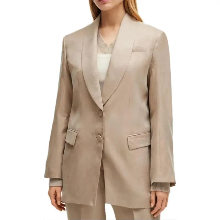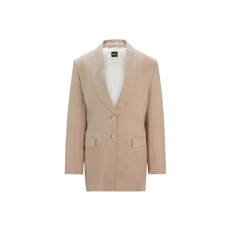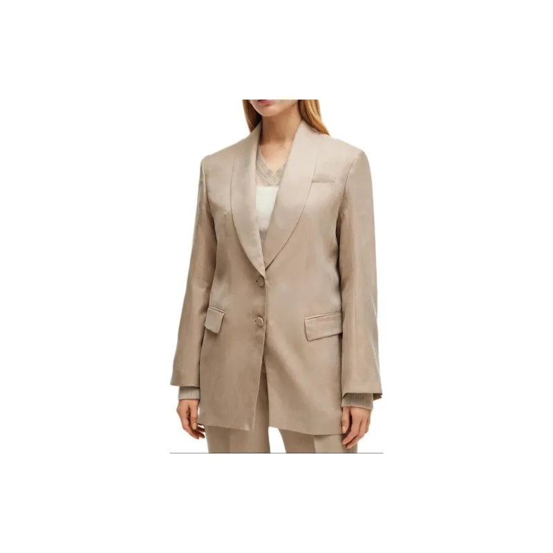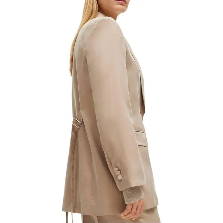Hugo Boss Longline Облегающий крой Куртка с Rear Ремень Куртки Пальто Женские Бежевый
