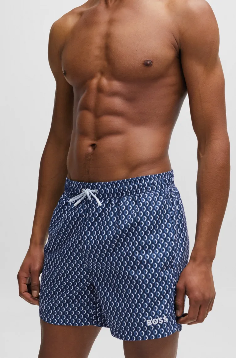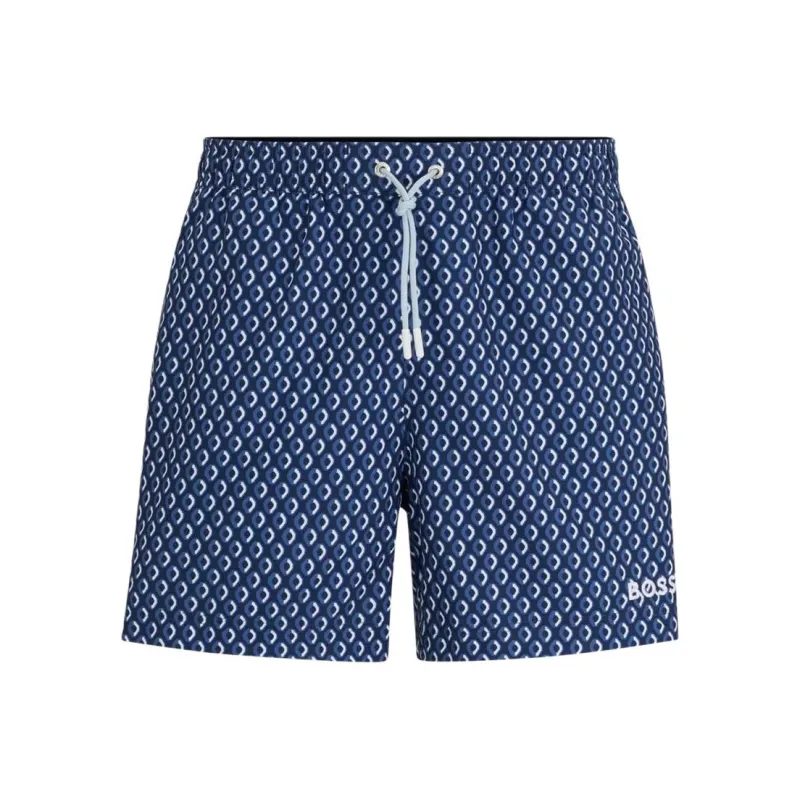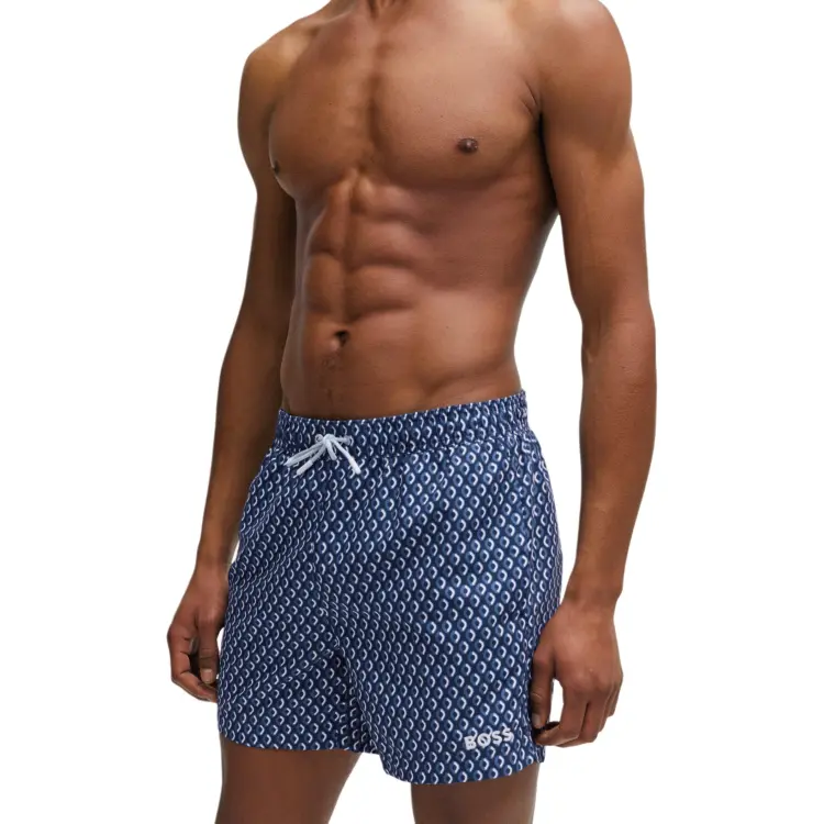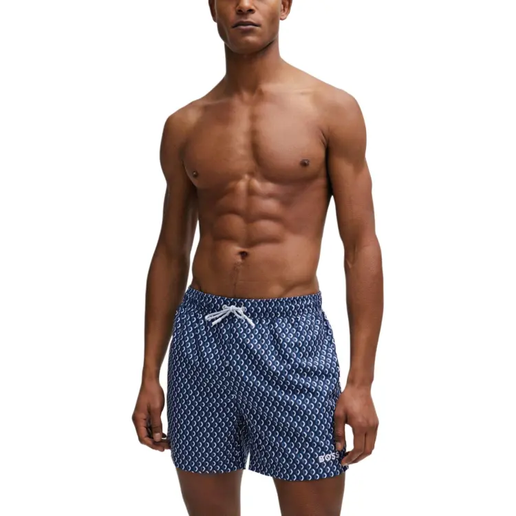 Hugo Boss Микро с принтом быстро сохнущие шорты для плавания с логотипом детали пляжные шорты мужской темно-синий