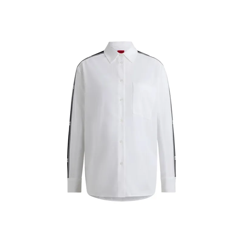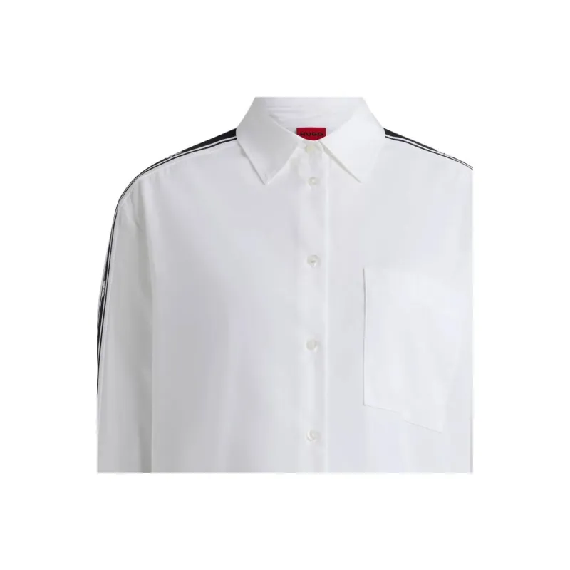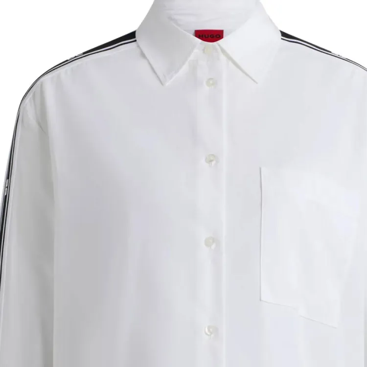 Hugo Boss OVERSIZED Форма Блоуз с Stacked Логотип Лента Украшения Рубашка Женская Белая