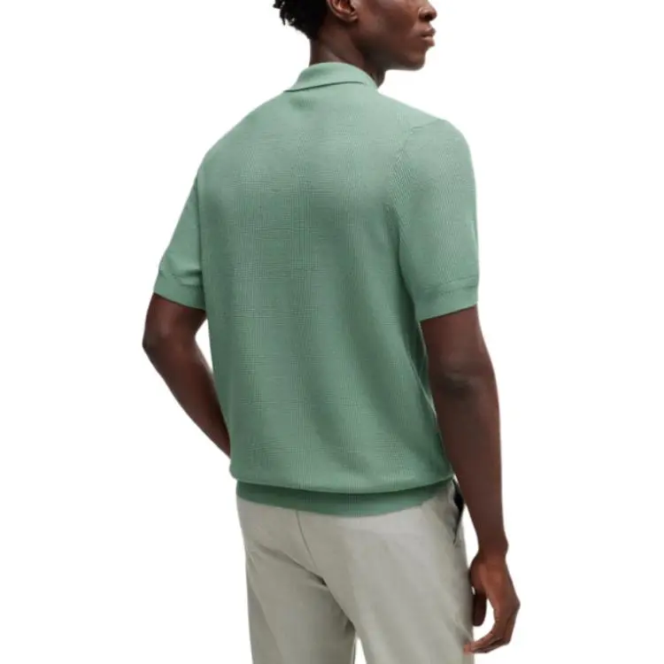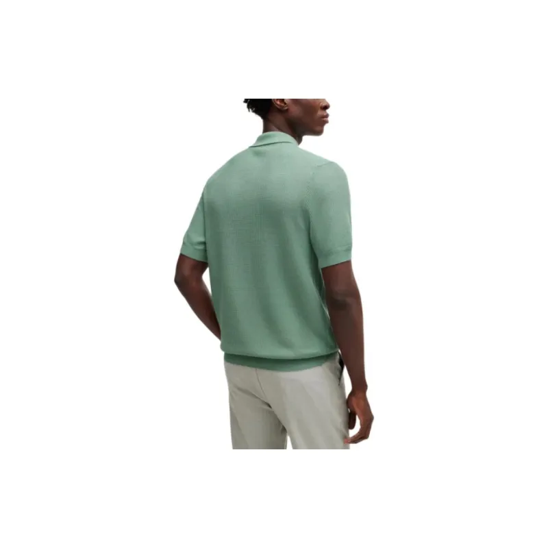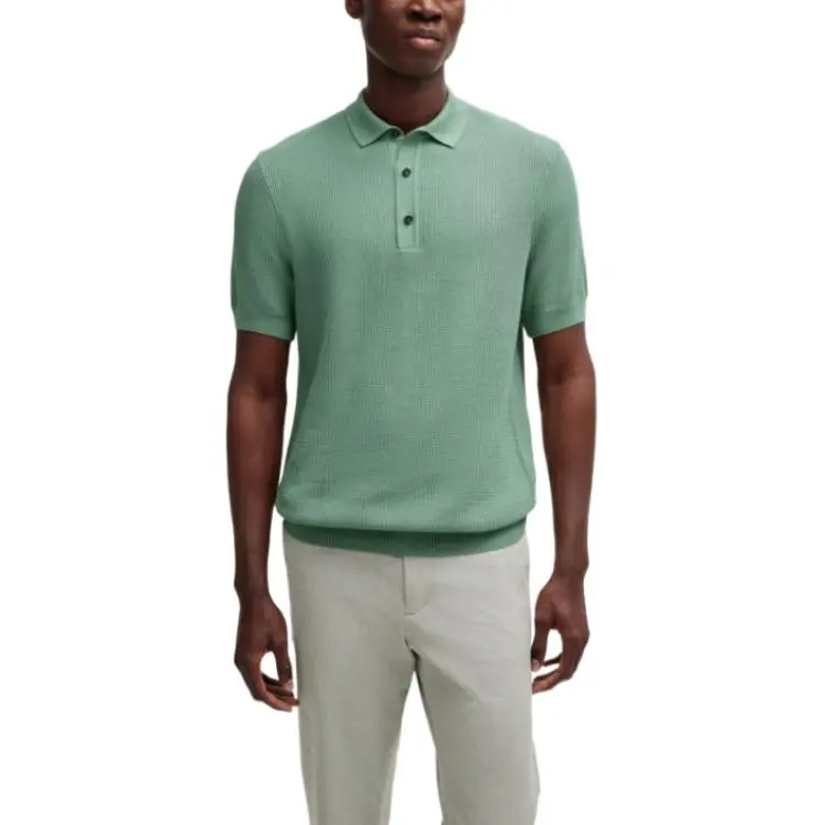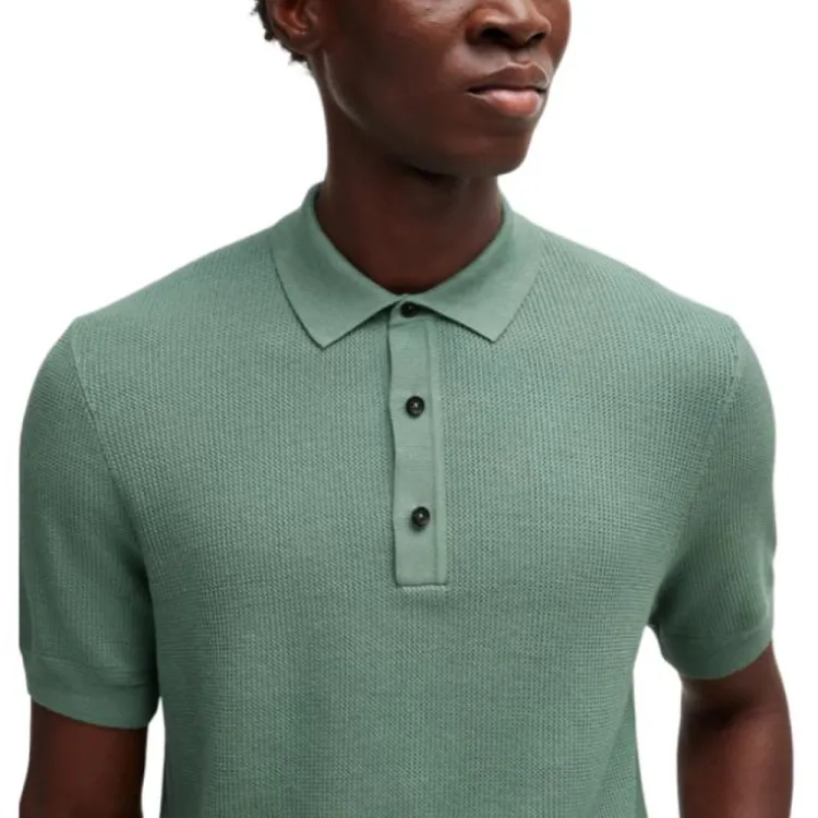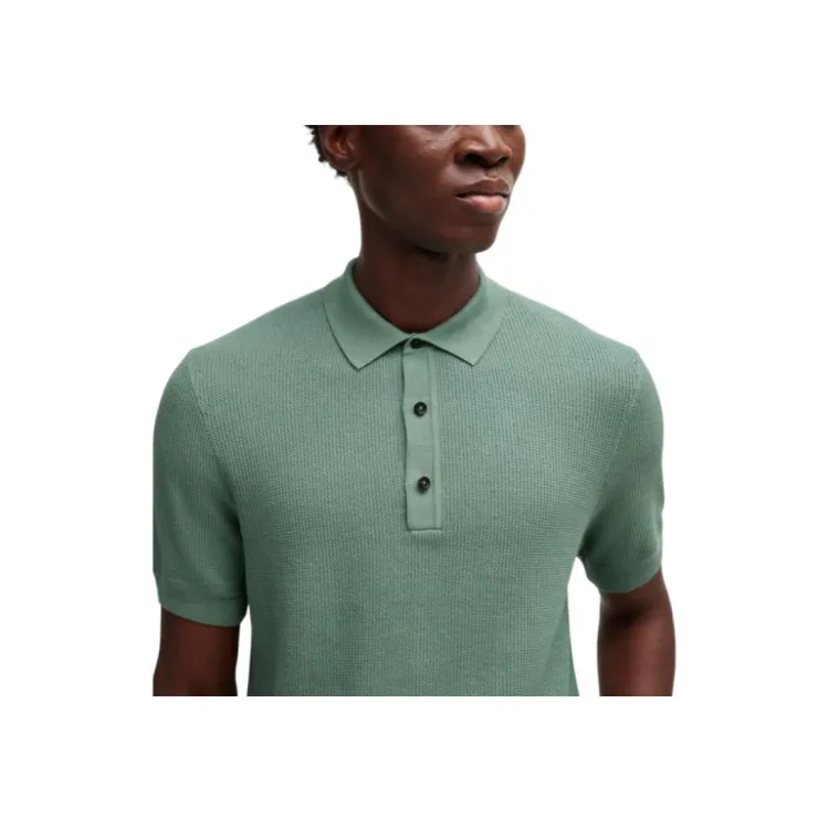 Hugo Boss Обычный крой POLO Свитер с Смешанными Структурами Поло Мужской Светло-зеленый