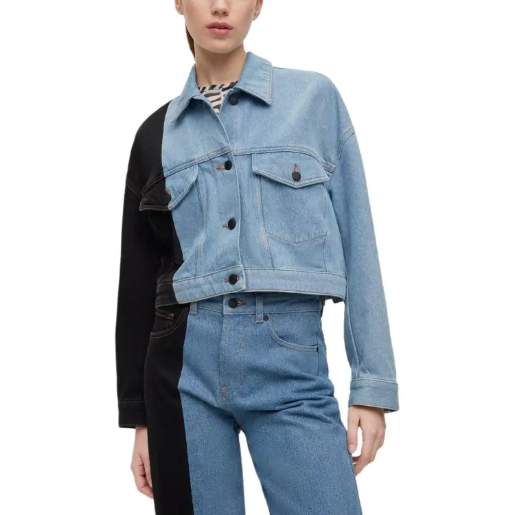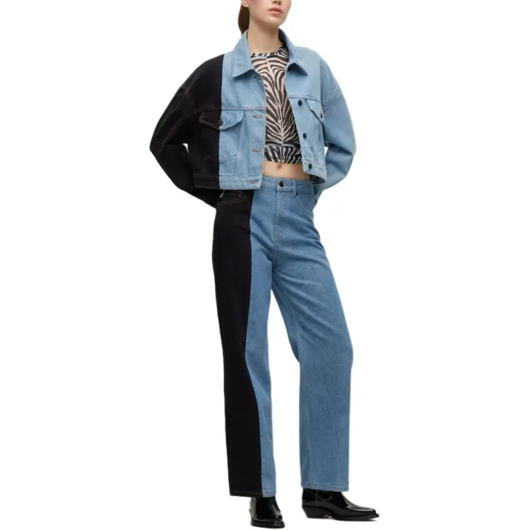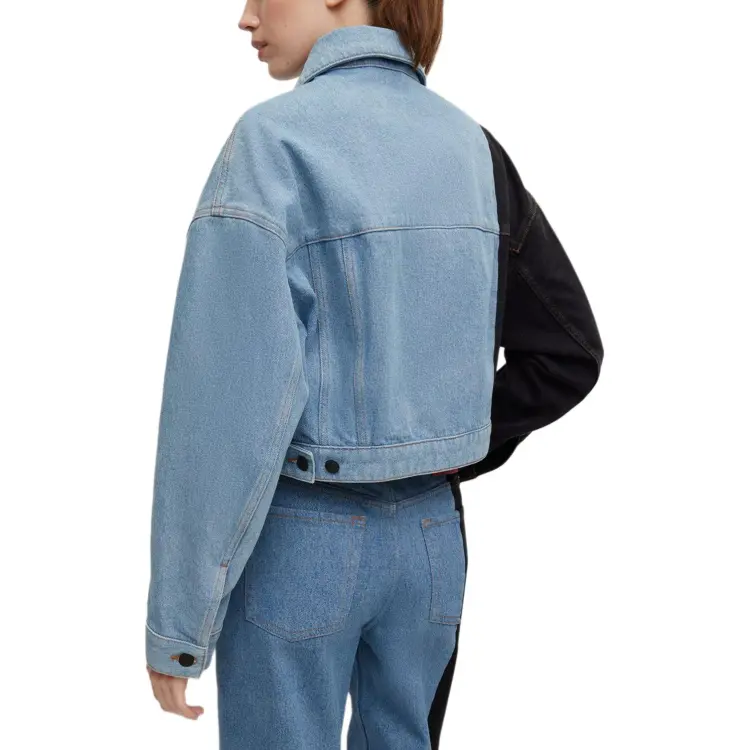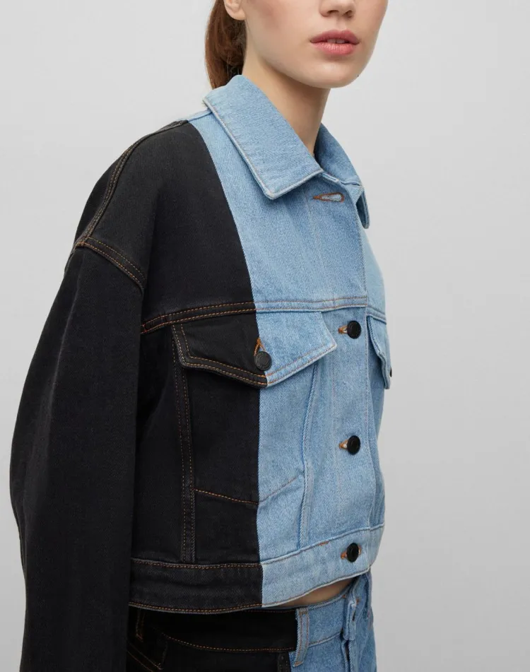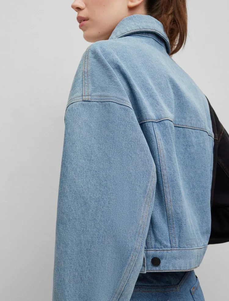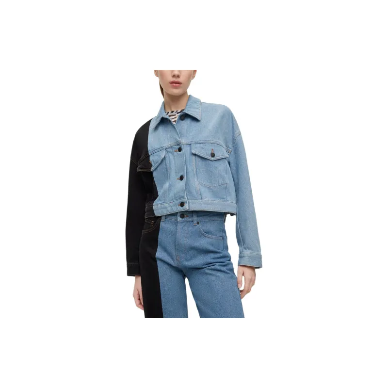 Hugo Boss Relaxed Fit Укороченный Деним Куртка с Контрастной Панелью Куртки и Пальто Женские Синий