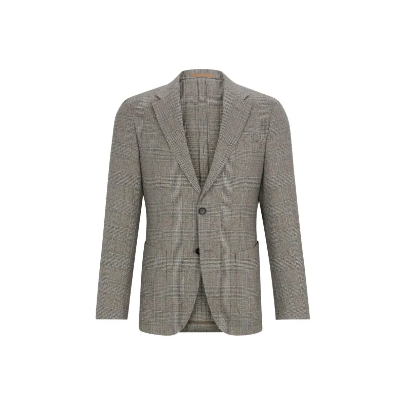 Hugo Boss Облегающий крой Куртка В клетку Шелк И Новая шерсть Бизнес Костюм Пальто Мужской Серый