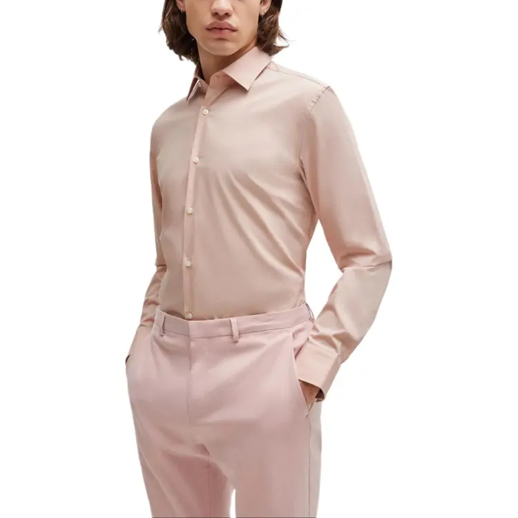 Hugo Boss Slim Fit Рубашка в Easy с железом хлопковый поплин мужская светло-розовая