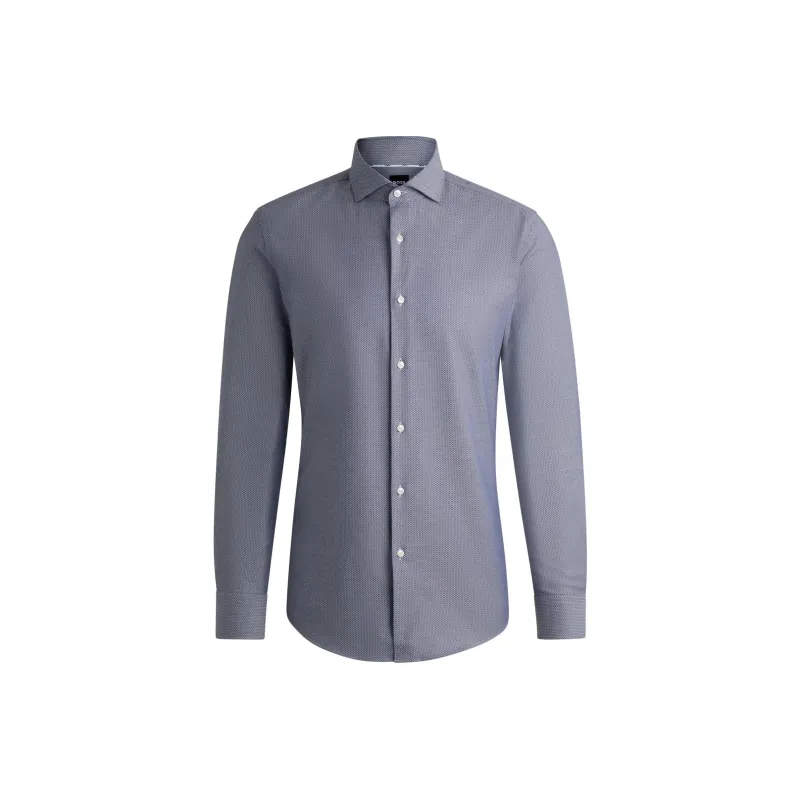 Hugo Boss Рубашка Slim Fit из эластичного хлопка с структурой мужская темно-синяя