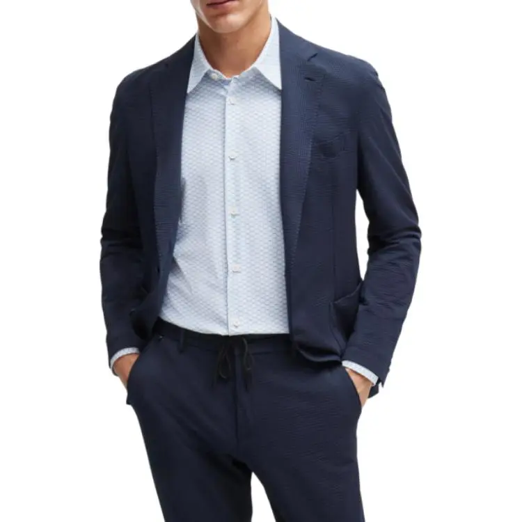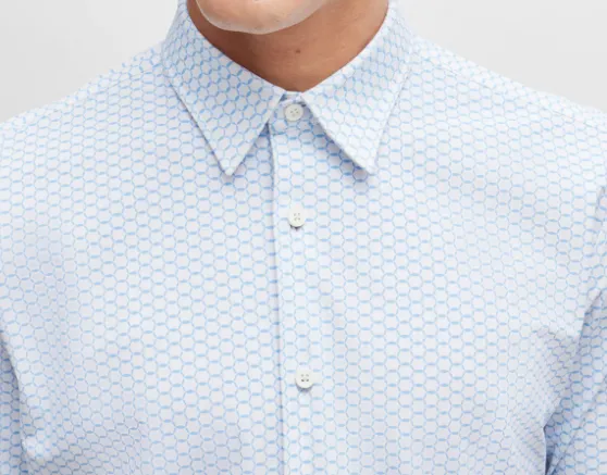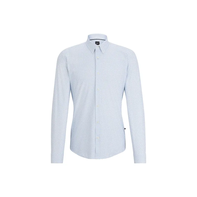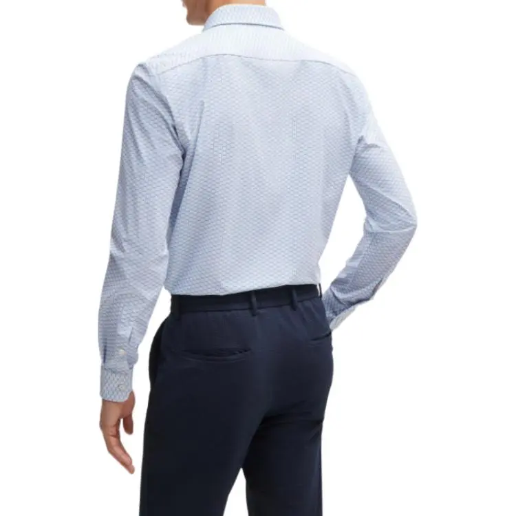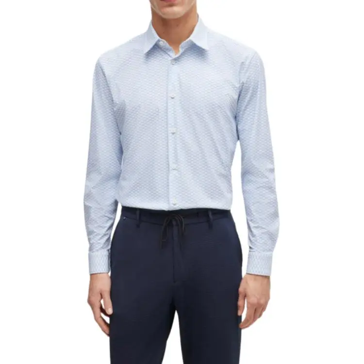 Hugo Boss Slim Fit Рубашка с принтом Performance Эластичный Джерси Рубашка Мужская Синяя Белая