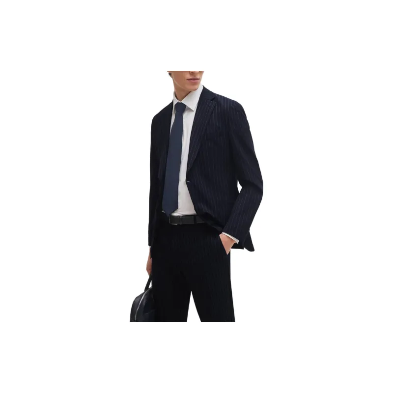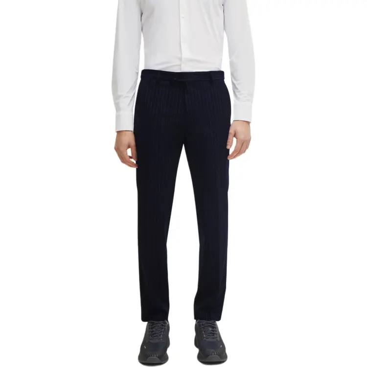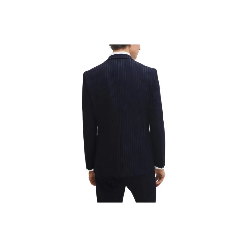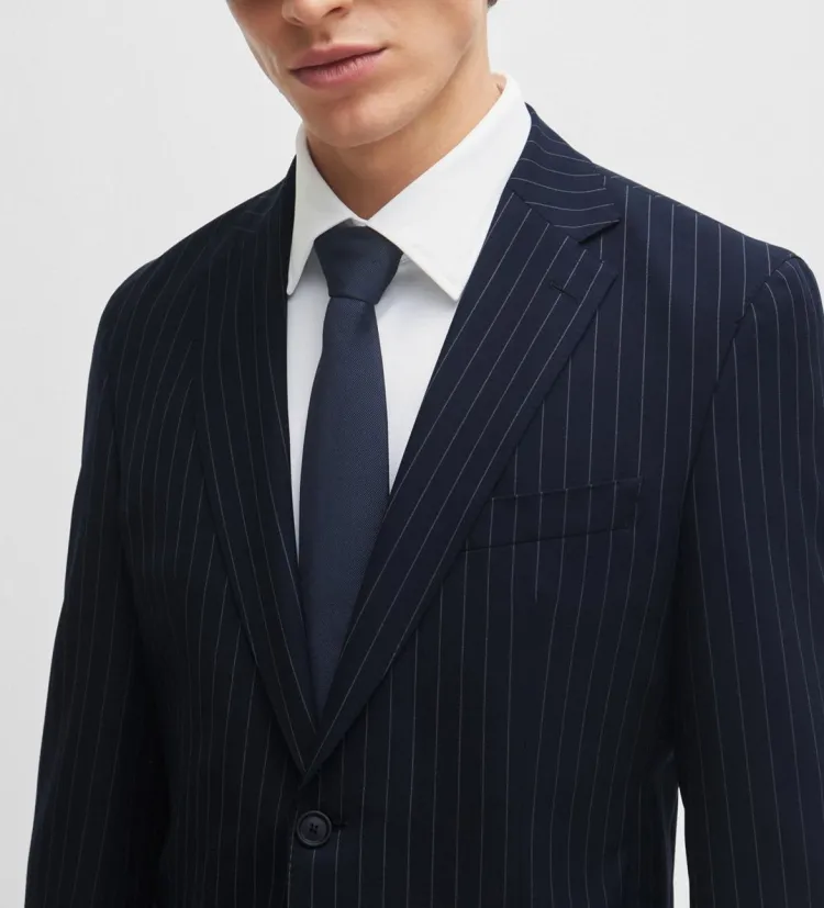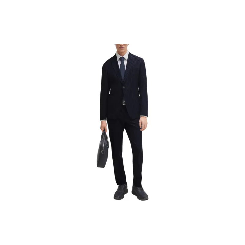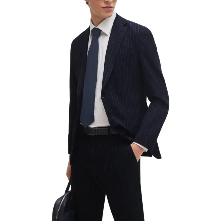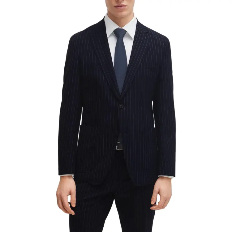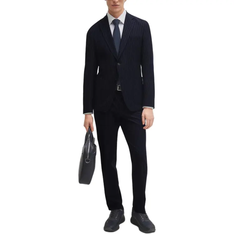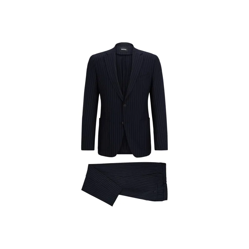 Hugo Boss Slim Fit костюм в полоску с эластичной тканью бизнес-костюм для мужчин темно-синий