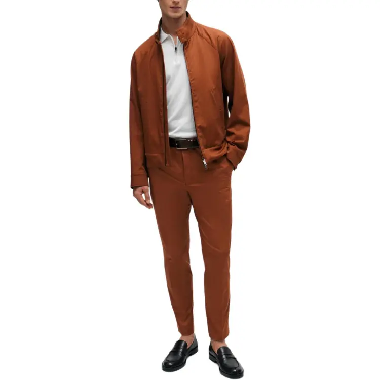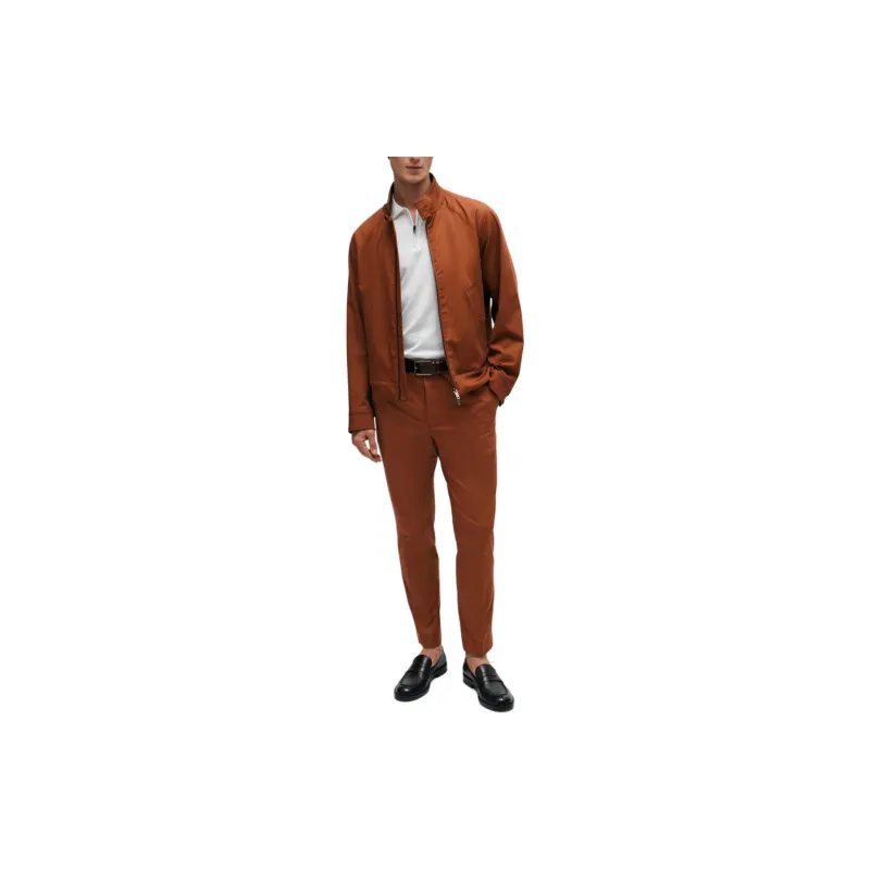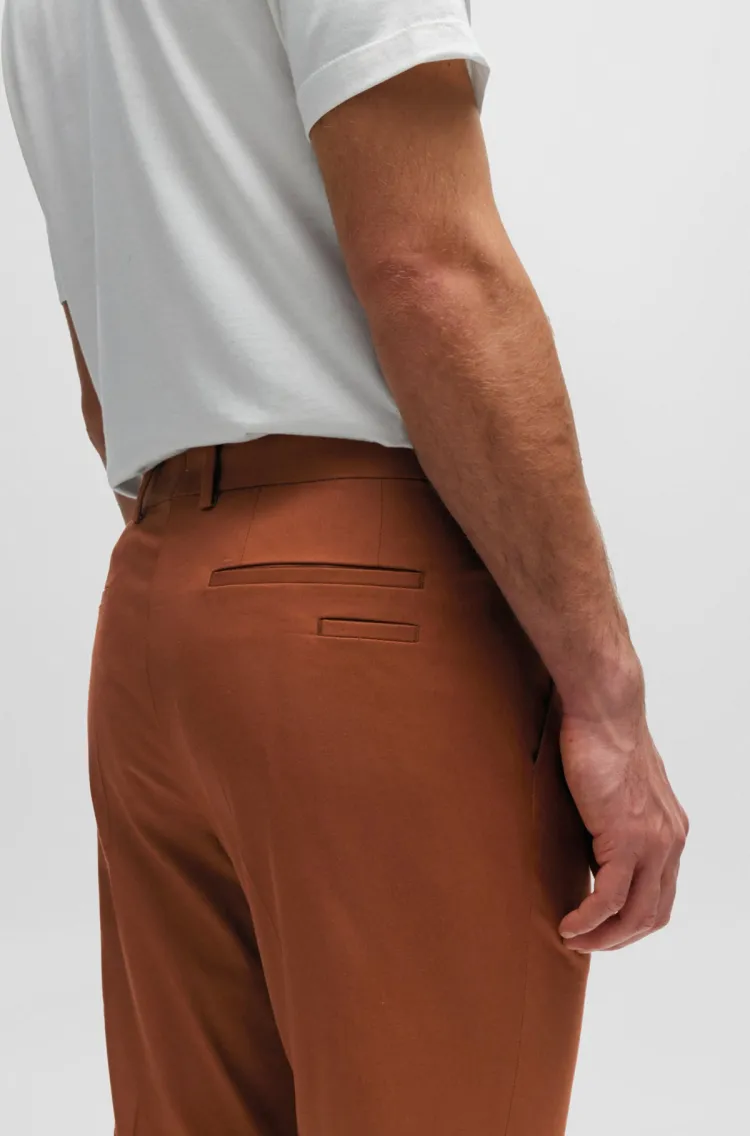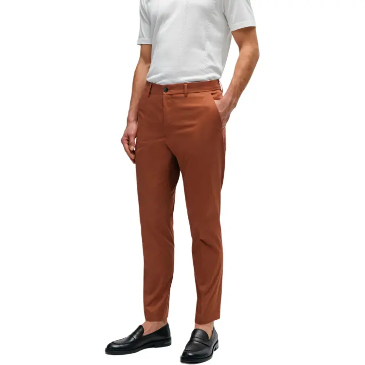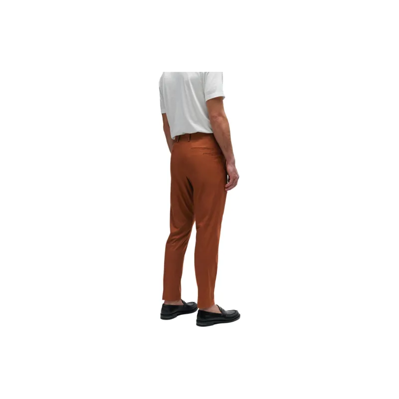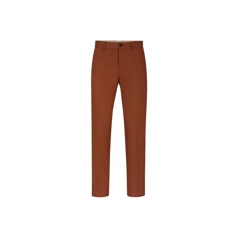 Hugo Boss Эластичные хлопковые брюки с шелковым повседневным кроем для мужчин коричневые