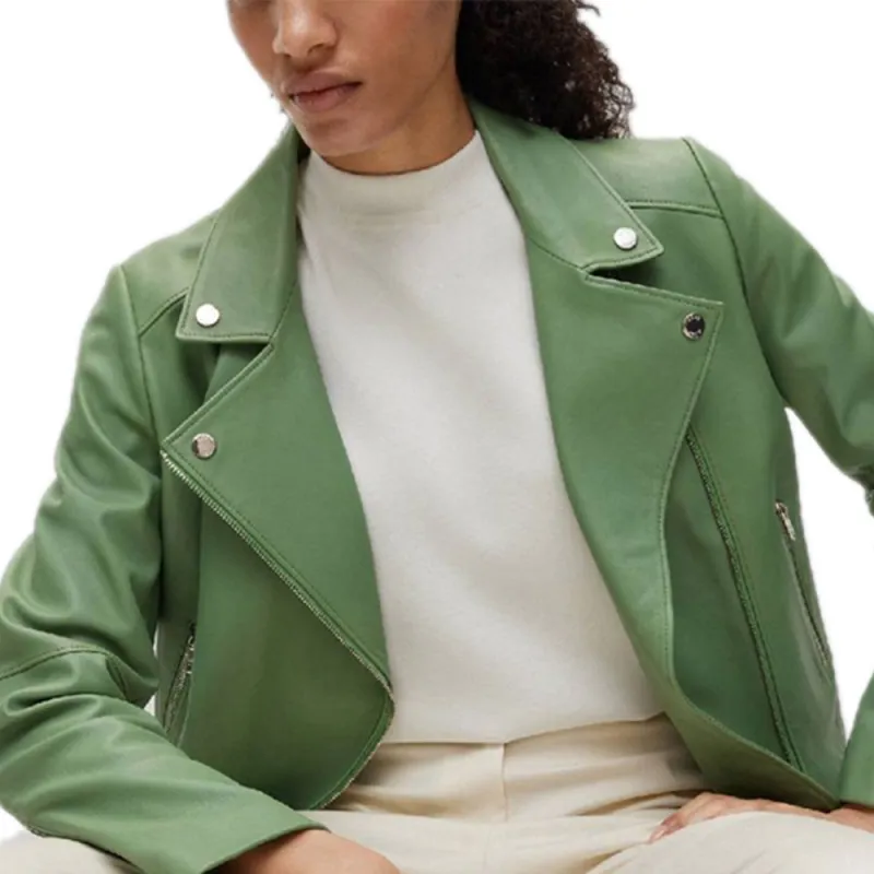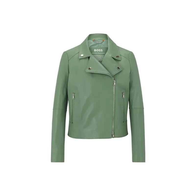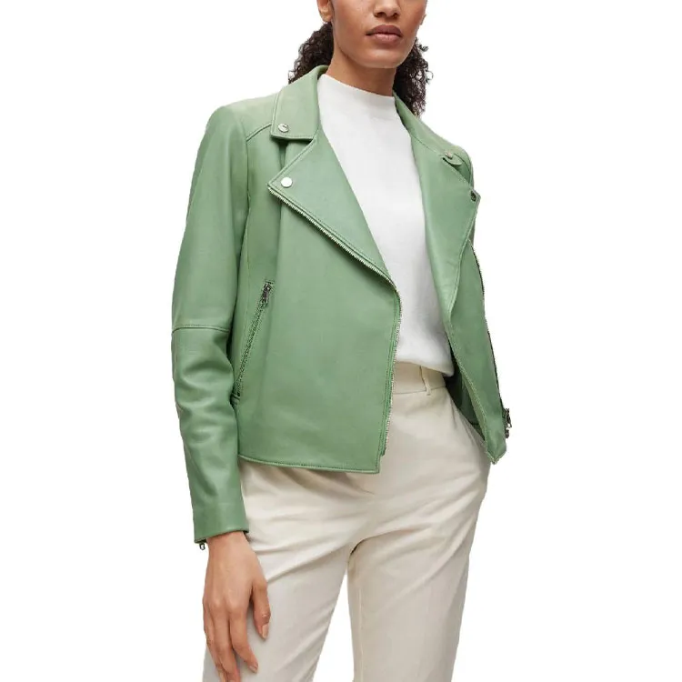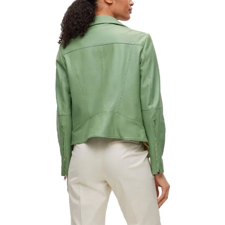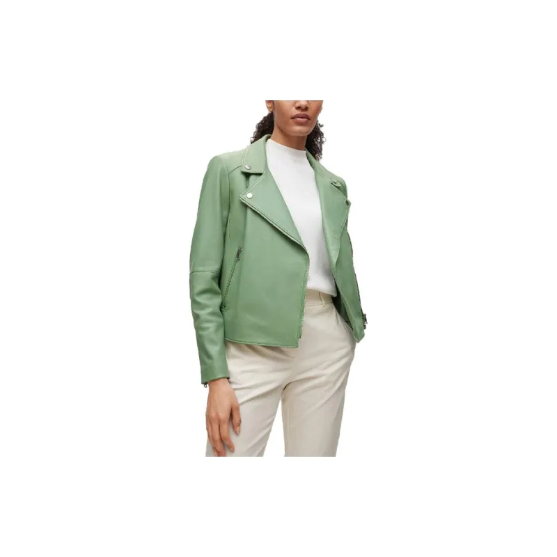 Hugo Boss SS23 Кожа Куртка Женская Светло-Зеленая