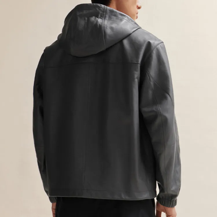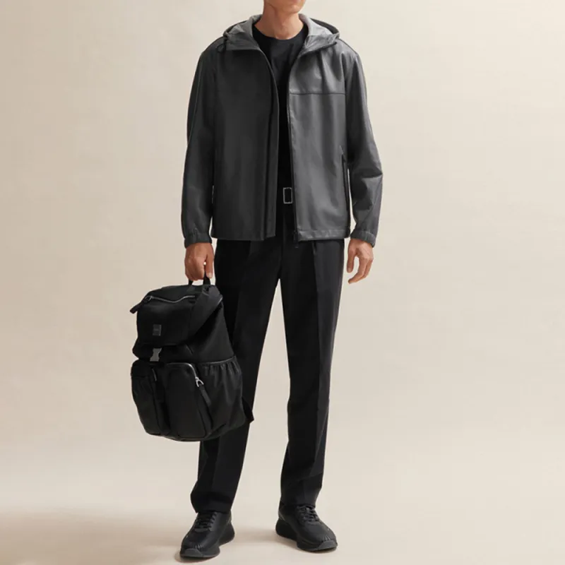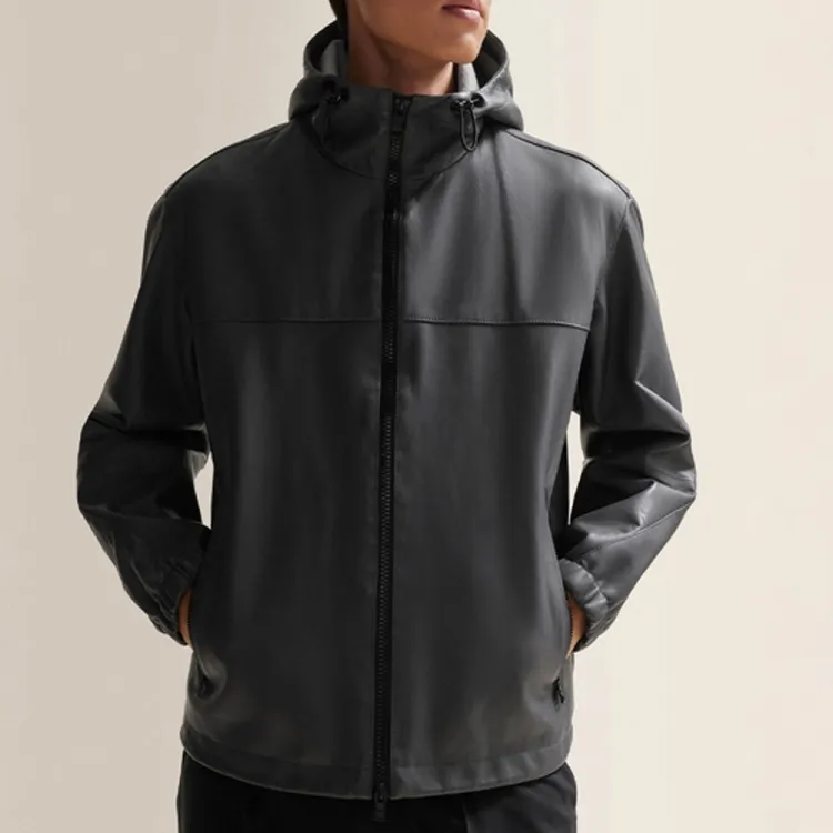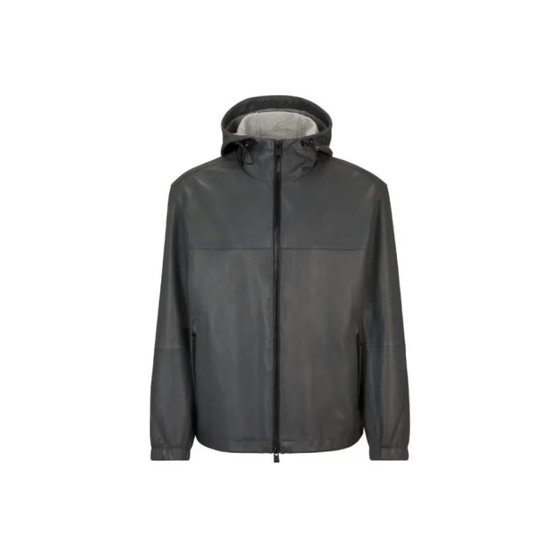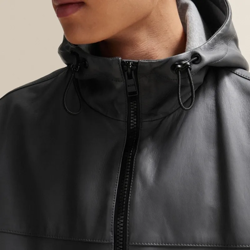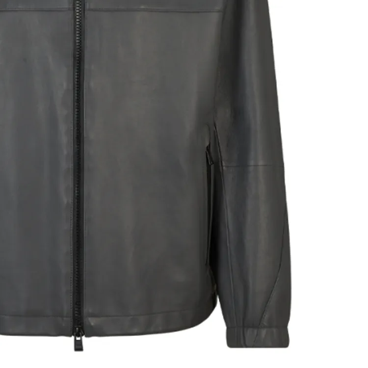 Hugo Boss SS24 Кожаная Куртка Мужская Темно-Серый