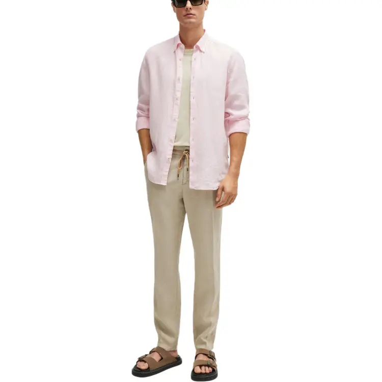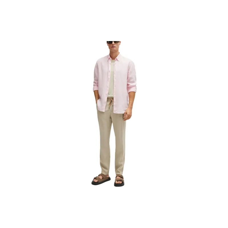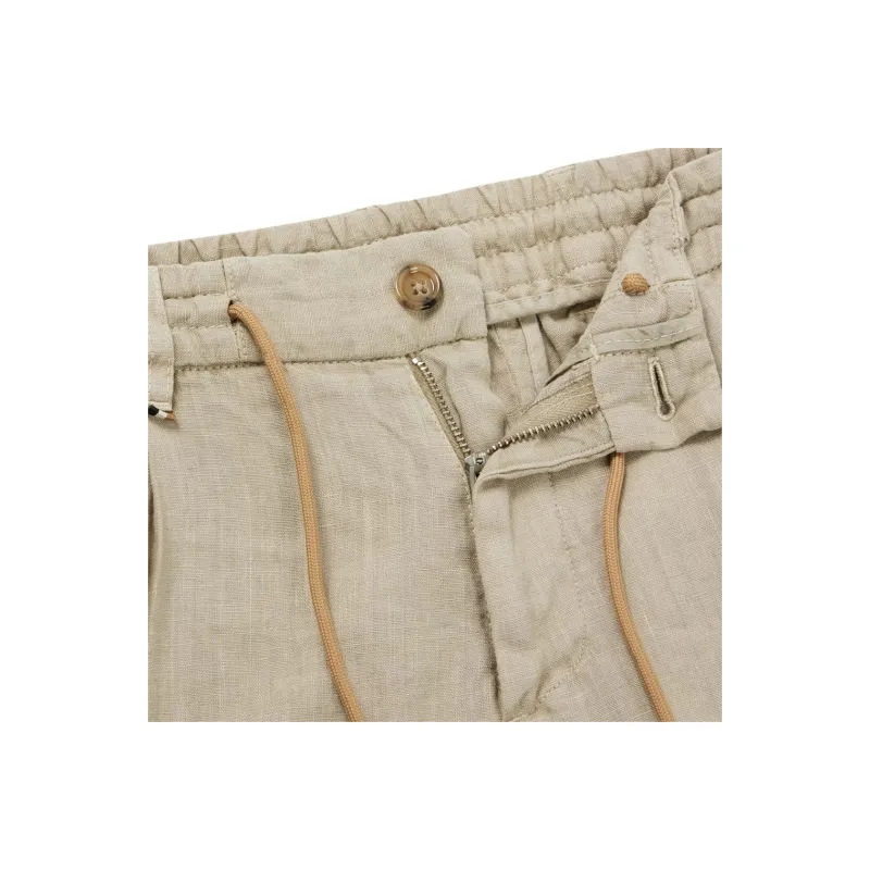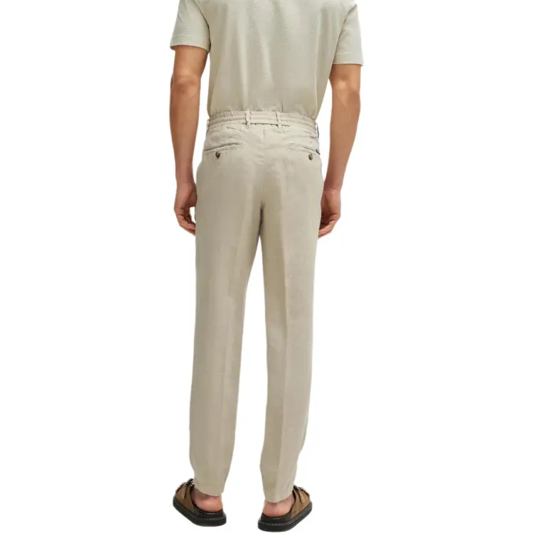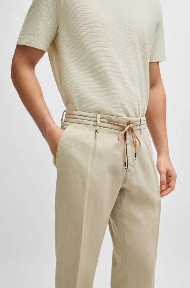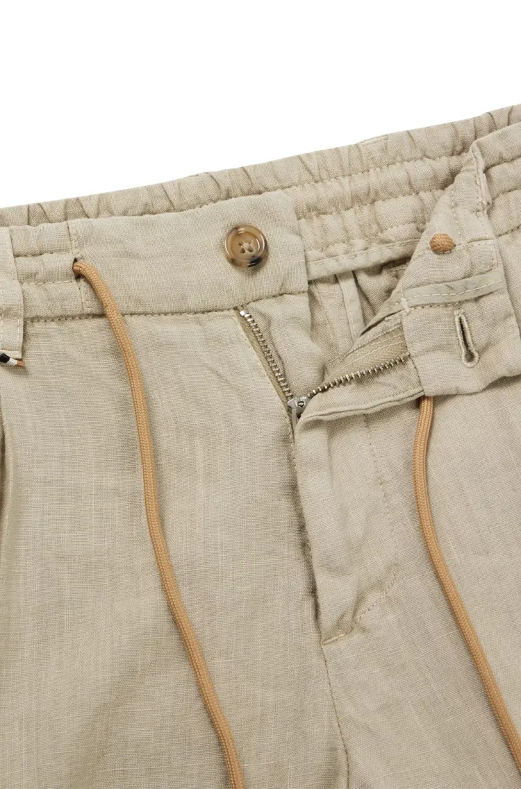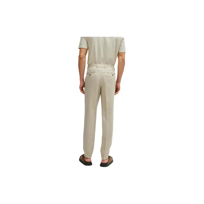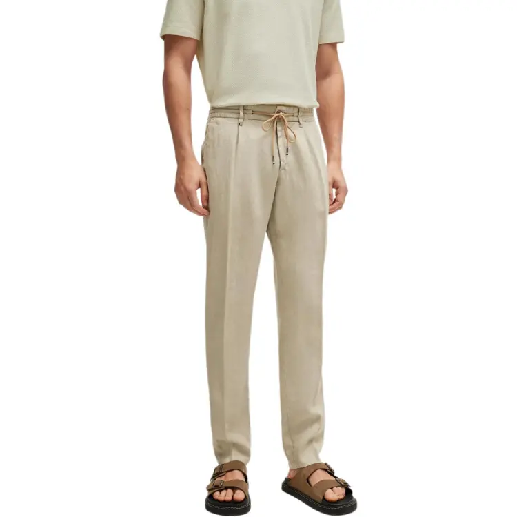 Hugo Boss SS24 Slim Fit Брюки из льна с галстуком повседневные брюки для мужчин светлый умбра