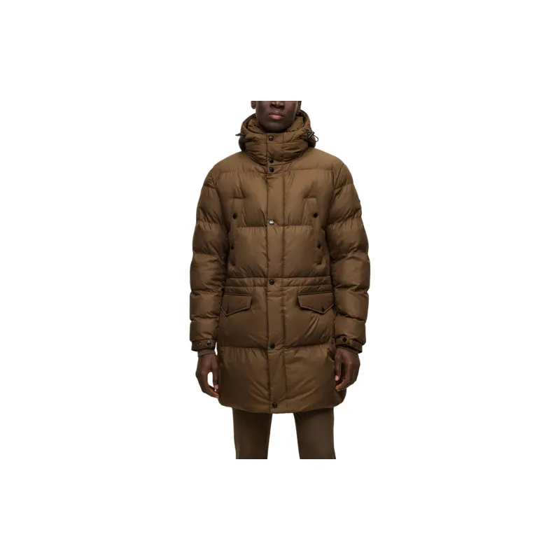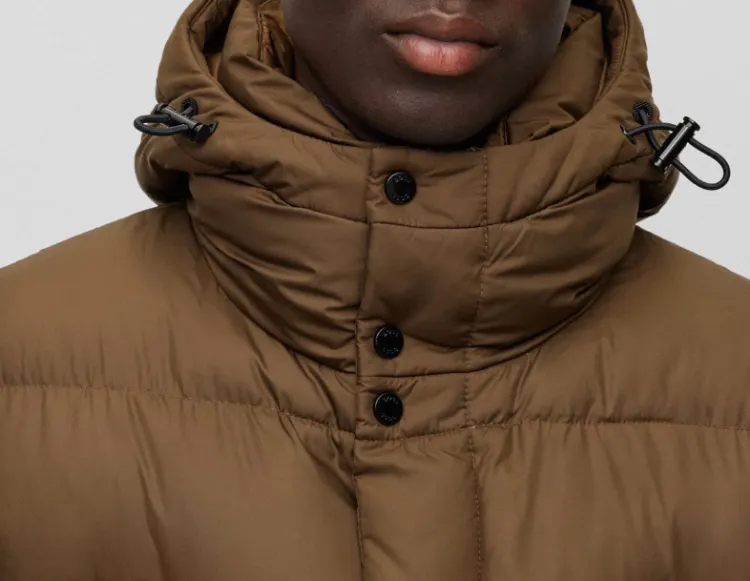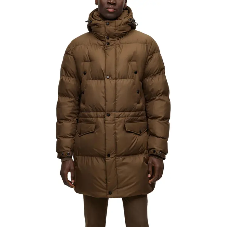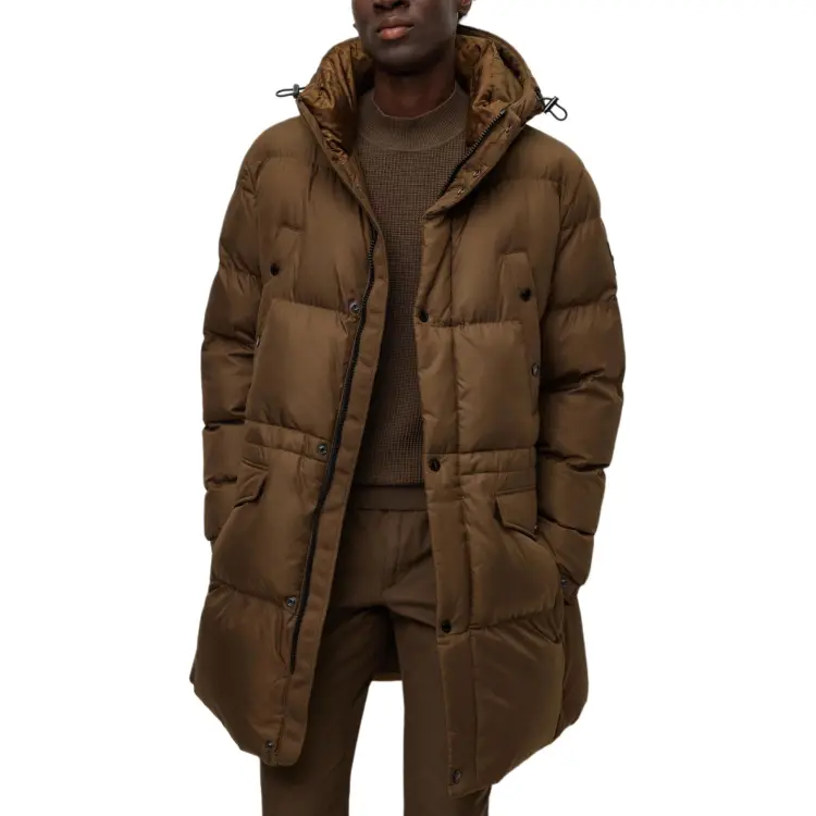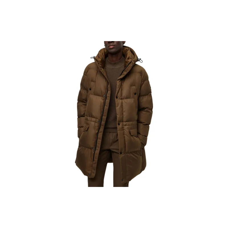 Hugo Boss Водонепроницаемый хлопковый пуховик с капюшоном Куртки и Пальто Мужской Коричневый