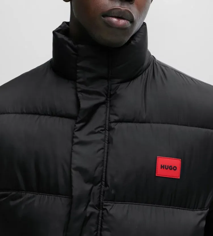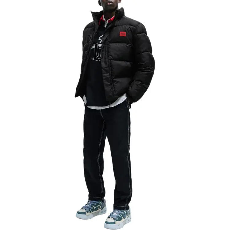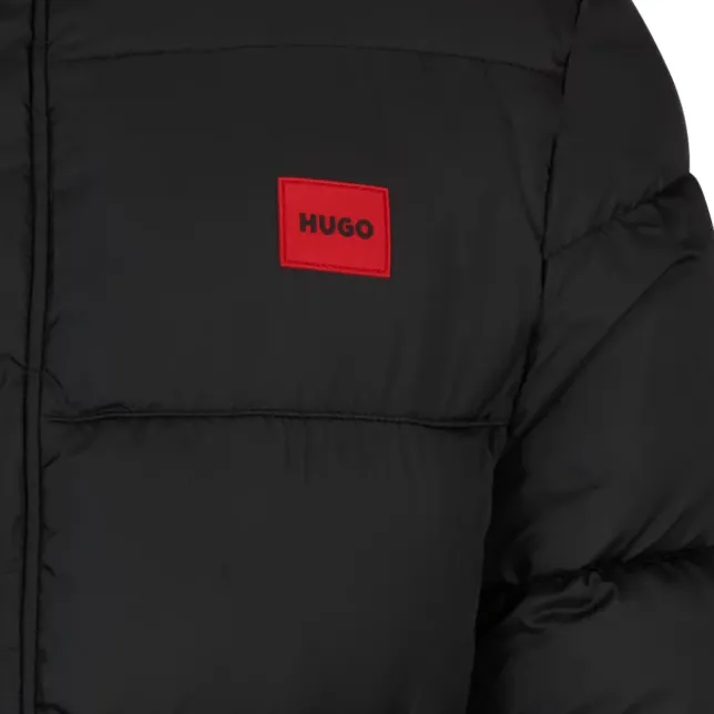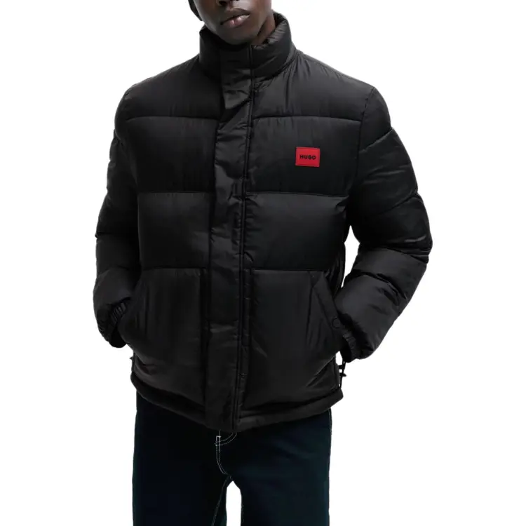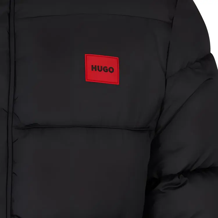 Hugo Boss Водонепроницаемая пуховая куртка с красным логотипом и значком мужская черная