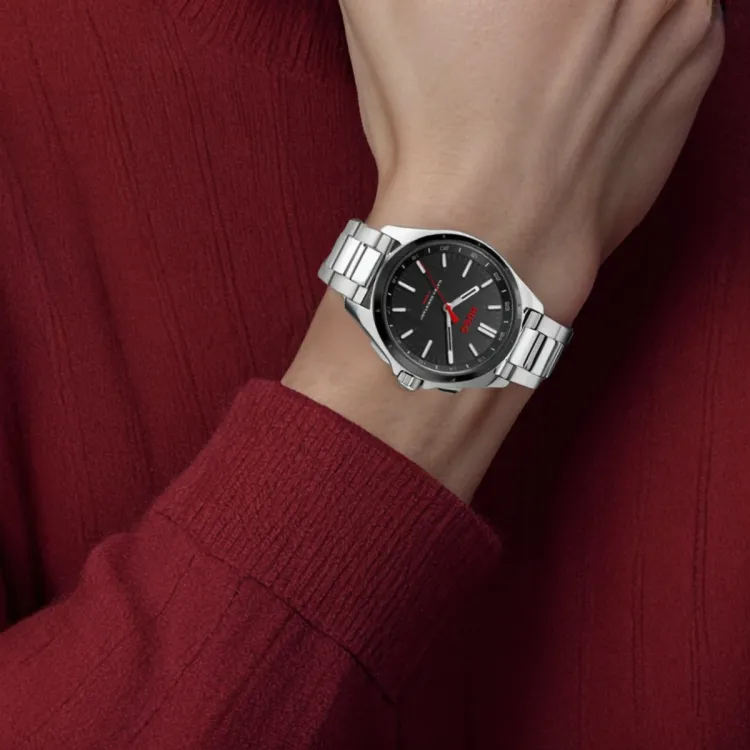Hugo Boss Мужские часы Кварцевый механизм Ремешок из нержавеющей стали 42 мм Черный циферблат