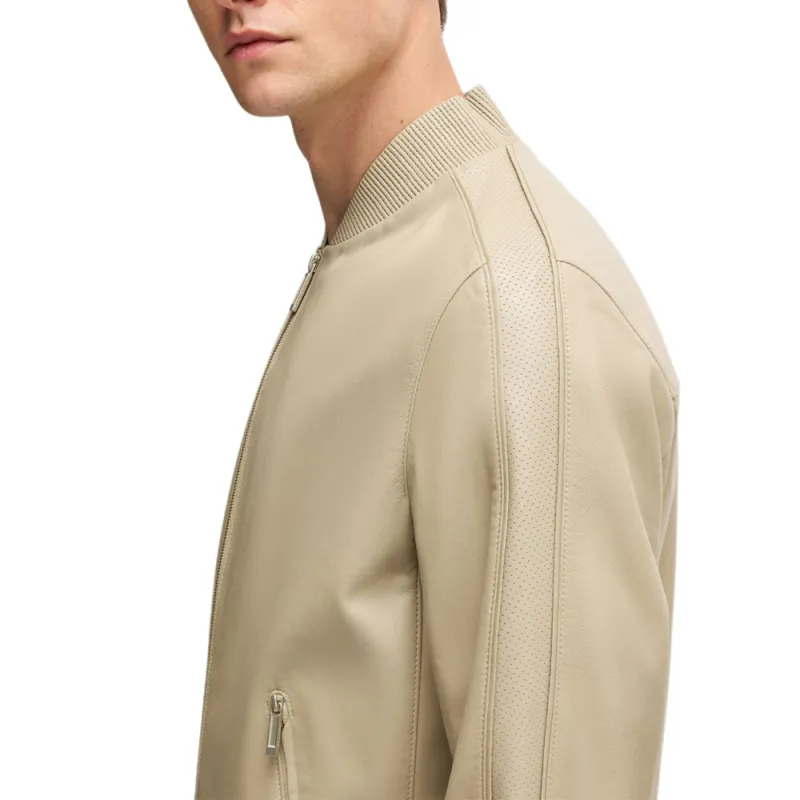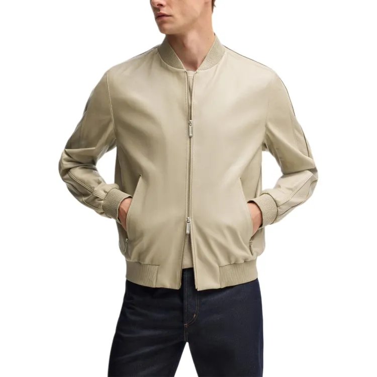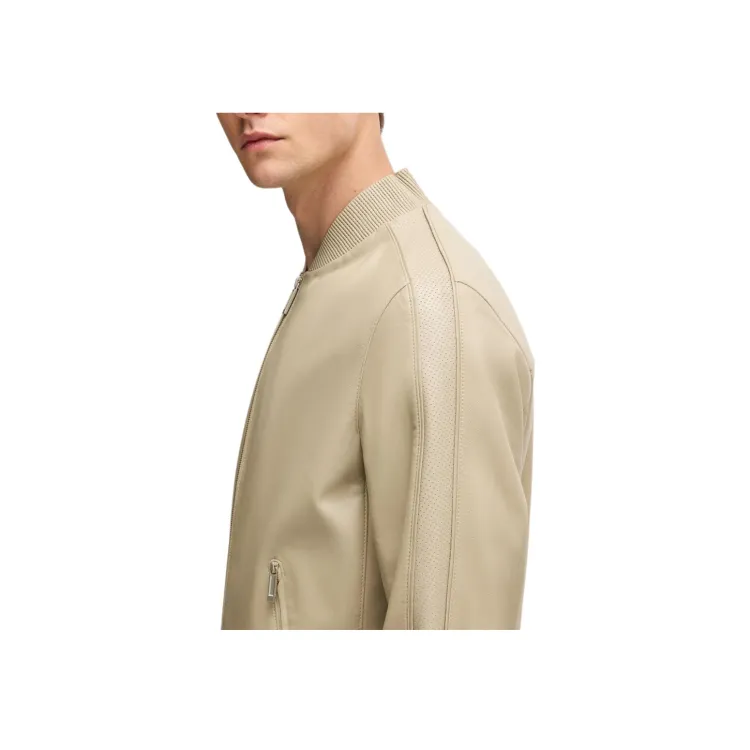 Hugo Boss x Aston Martin Кожаная Куртка Мужская Светлый Бежевый