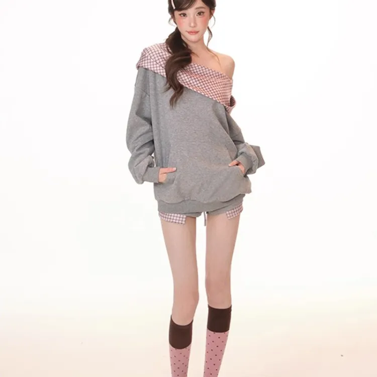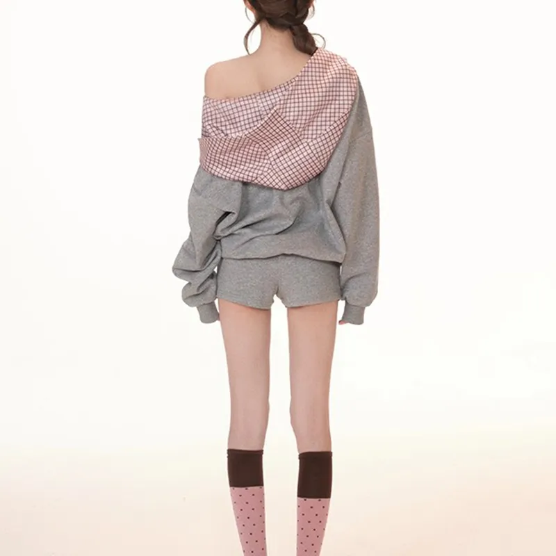 Комплект:Комплект одежды: Жемчужно-серый топ + Жемчужно-серые шорты (высокое качество)