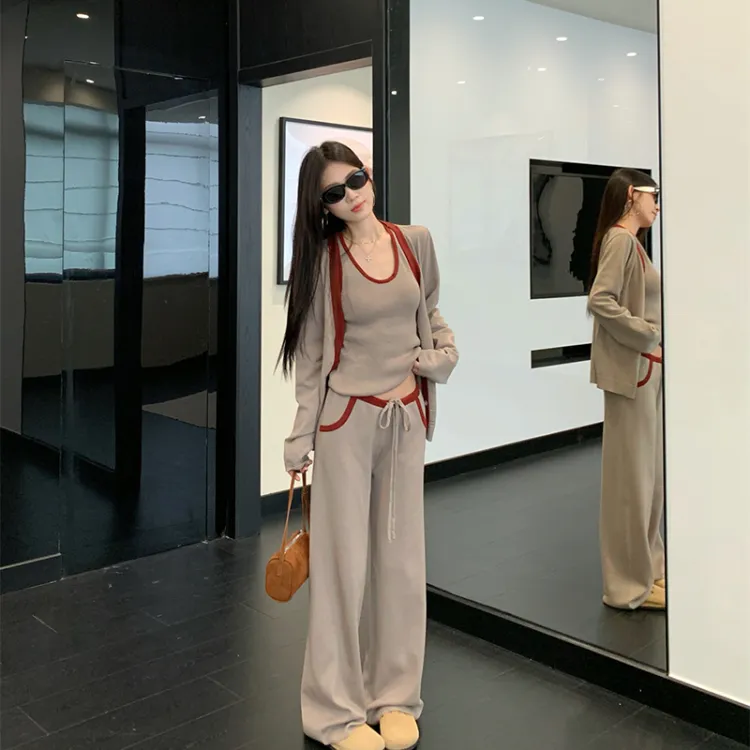 HUINIAN Топ-танк + кардиган + брюки повседневный костюм для женщин