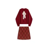 Цвет:Красный свитер + клетчатая короткая юбка