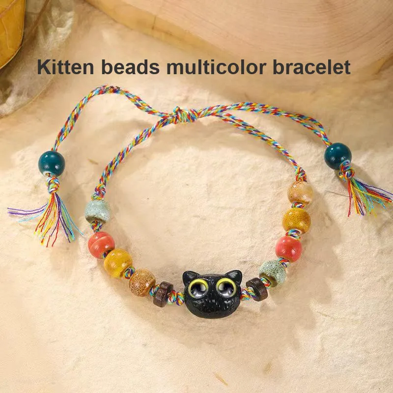 Женский браслет с бусинами в виде кошки, разноцветный