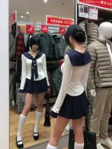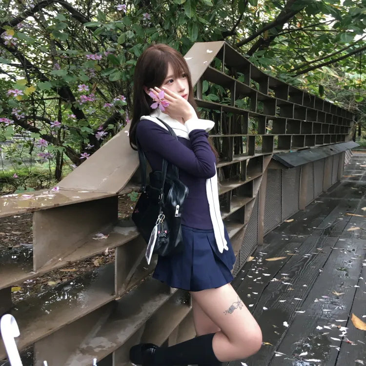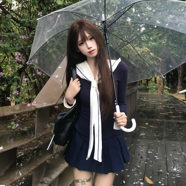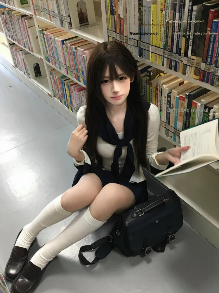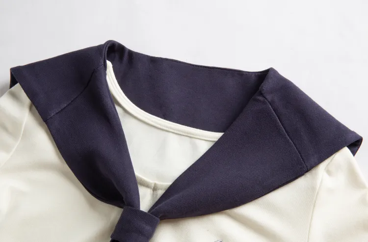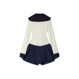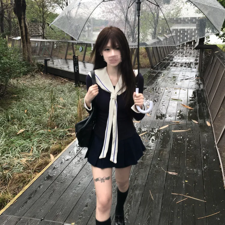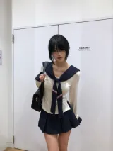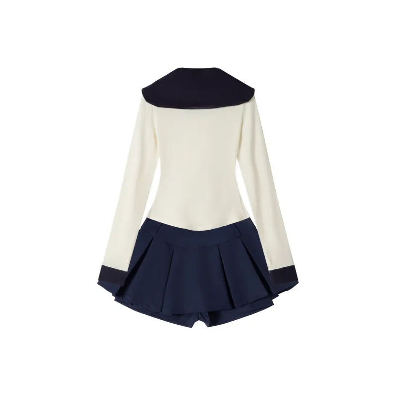 Морской стиль, девичий, темно-синий, длинный рукав, топ + белая шаль + морской стиль, короткая юбка