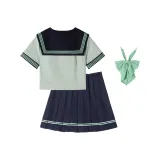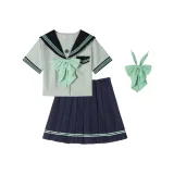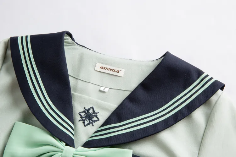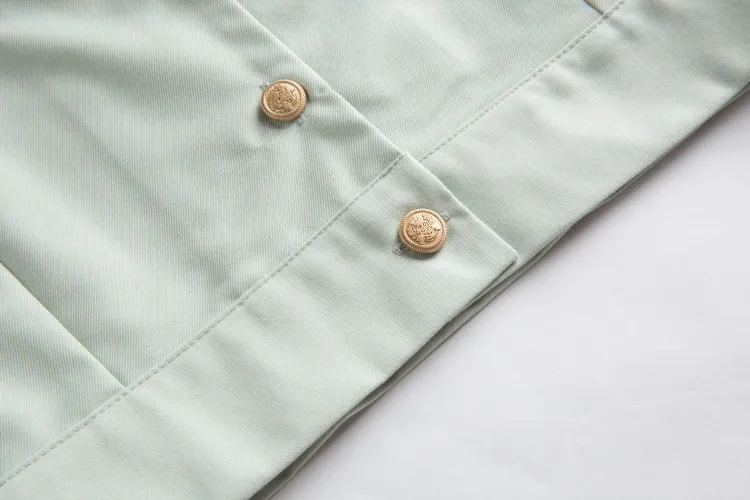 Цвет:[Мятный] Короткий рукав Топ + Юбка с двумя пуговицами и оборками + Мятный воротник с цветочным дизайном