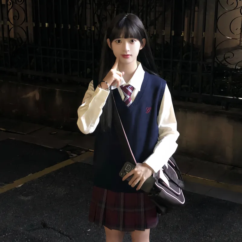 Юбка Xuan Ge + Темно-синий жилет Xingzi + Рубашка с длинным рукавом + Галстук