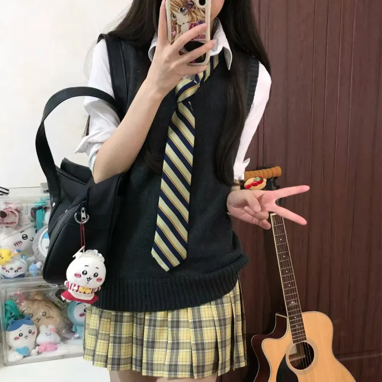 Tomorrow'S Promise Короткая юбка + Темно-серый пуловер + Светлая рубашка Melody