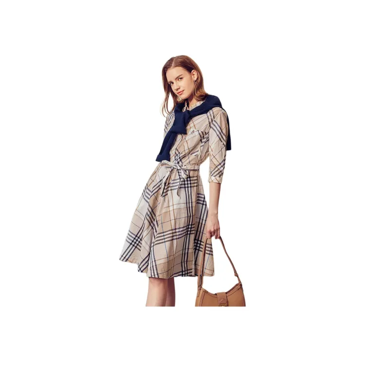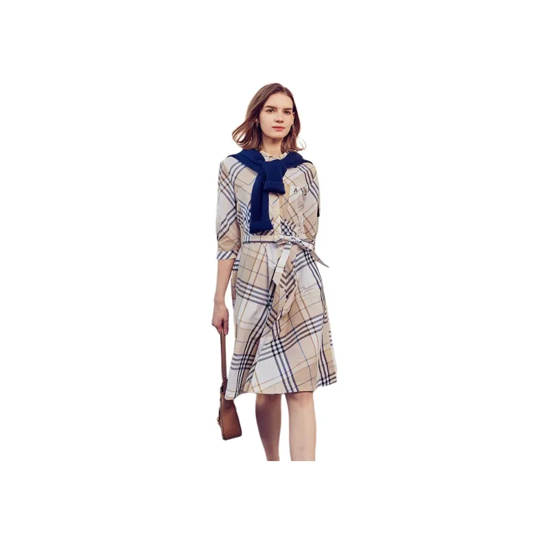 Hush Puppies Длинное платье с длинными рукавами женское в клетку