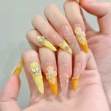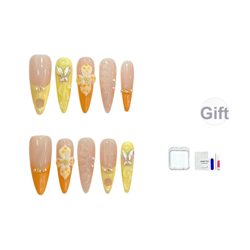 HUYONG Ярко-оранжевый 3D-эффект Frangipani False Nail Заостренный Тип Французский Градиентный Coquette 20 мм
