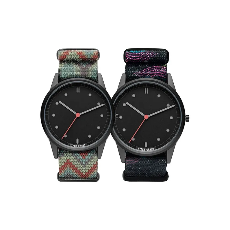 HYPERGRAND Watch Кварцевый механизм Нейлоновый ремешок Черный циферблат Унисекс NW01MUTI+NW01OASI