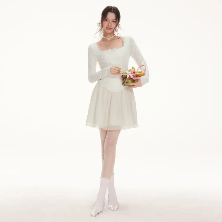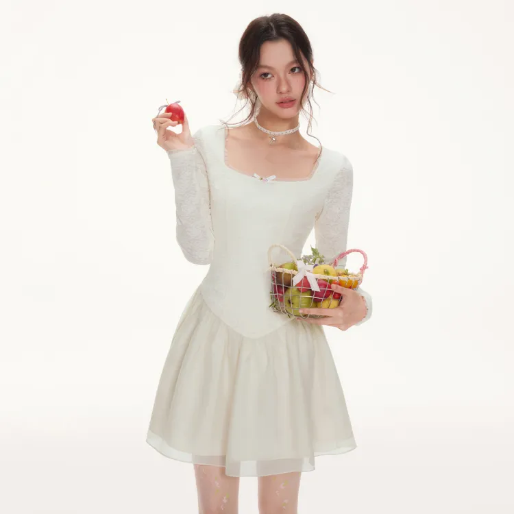 I'M ONE Длинное платье с длинными рукавами женское экрю