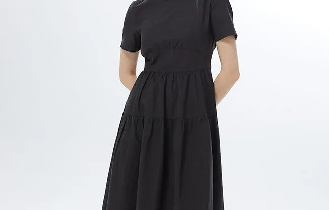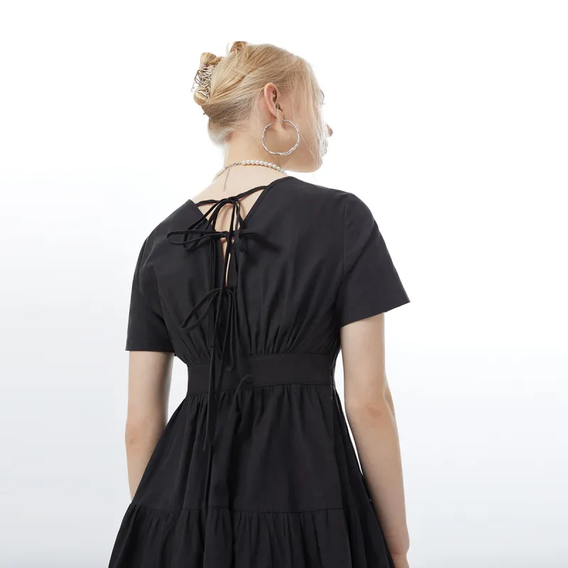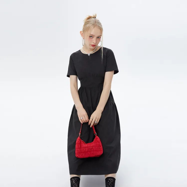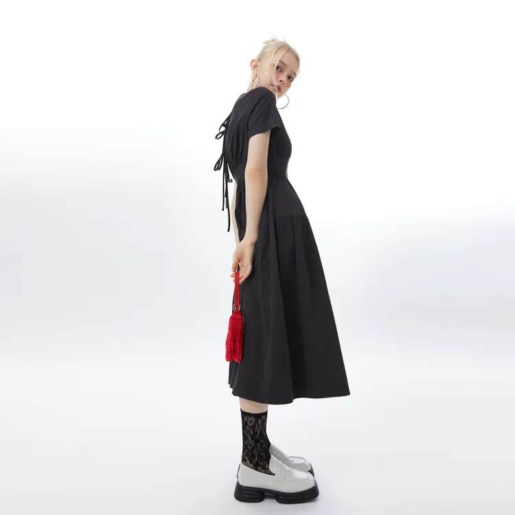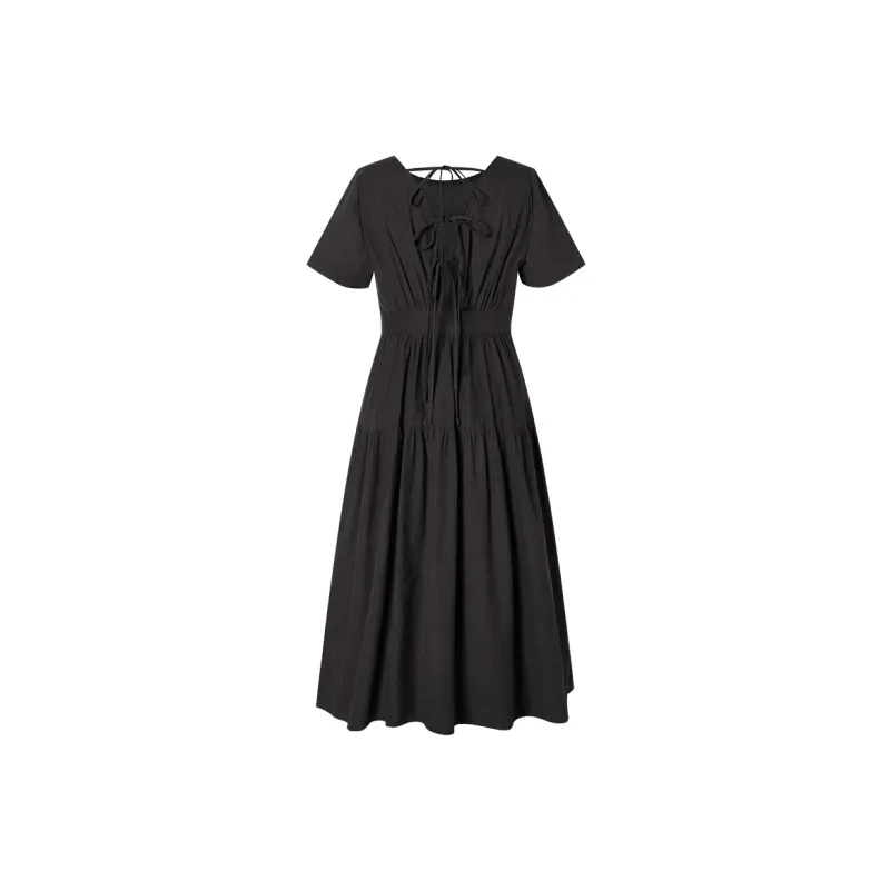 I'M ONE SS22 Круглый вырез Облегающий Короткий рукав Платье Женское Черное