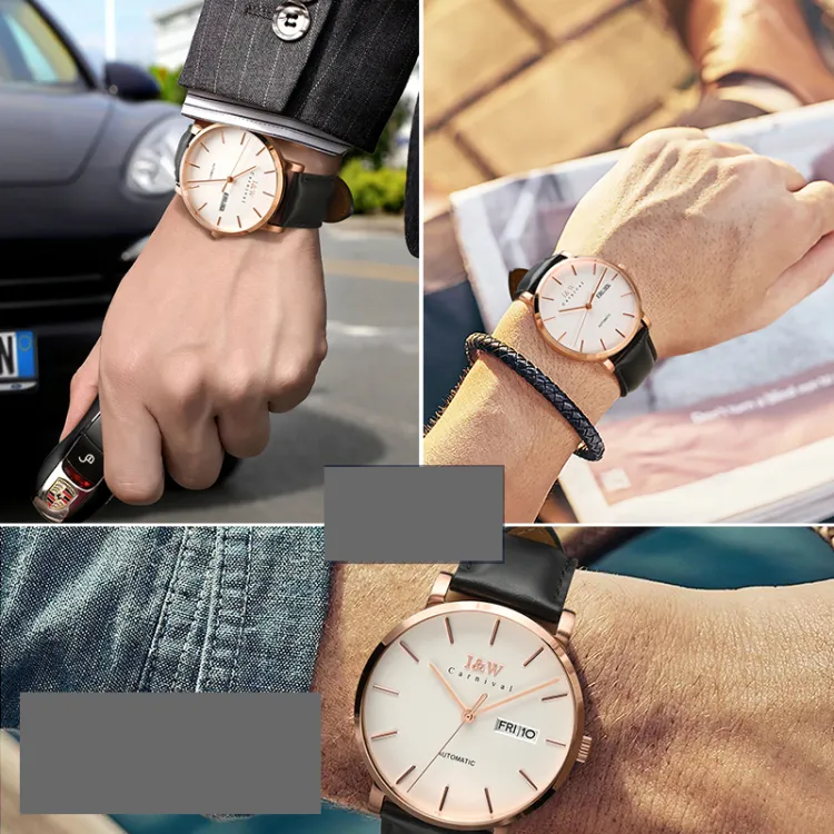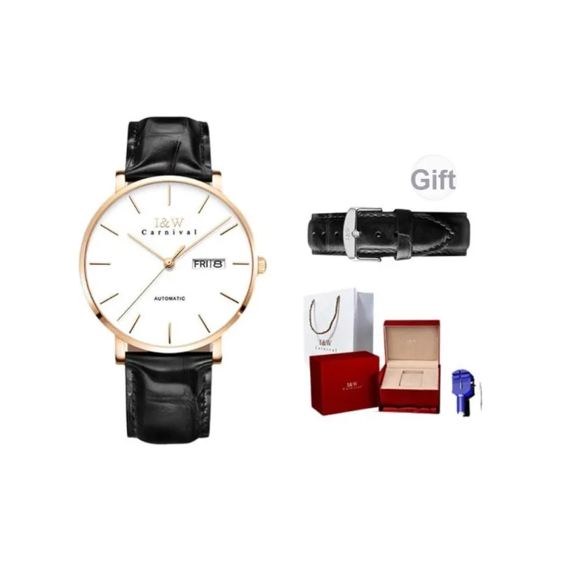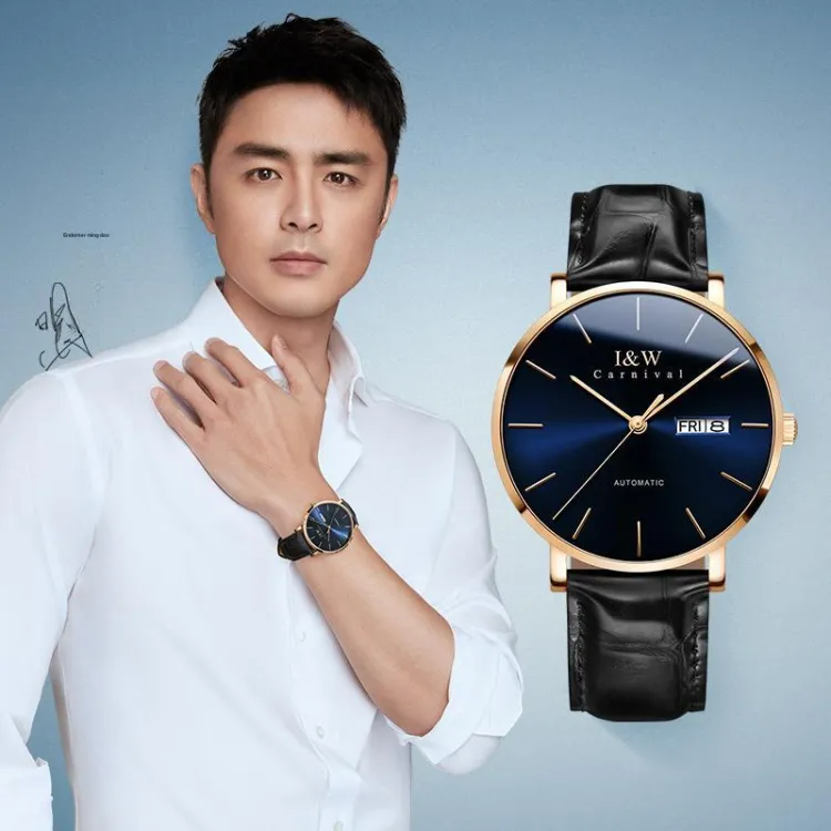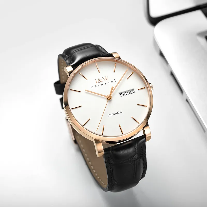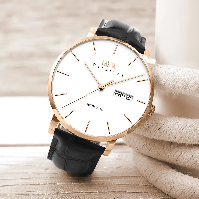 I W CARNIVAL HWGUOJI Автоматический механический механизм натуральная кожа ремень часы мужские синий циферблат