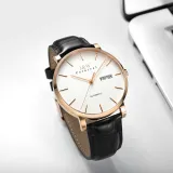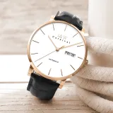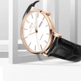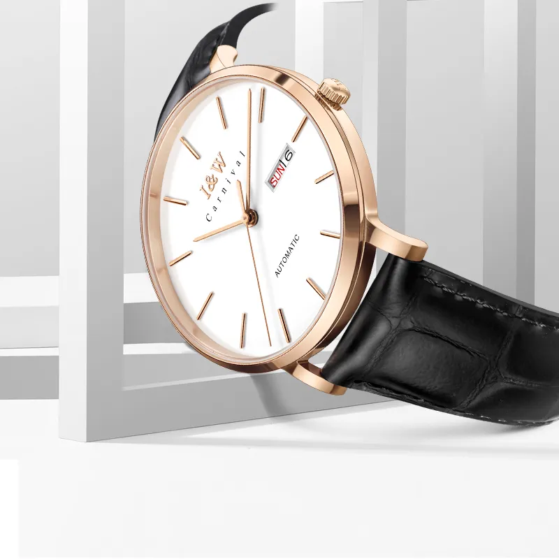 Розовое золото, белый циферблат, кожа, с текстурой [импортный механизм]