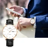 Циферблат Цвет:Розовое золото, белый циферблат, черная кожа, бамбук, с текстурой, кожа [импортный механизм]