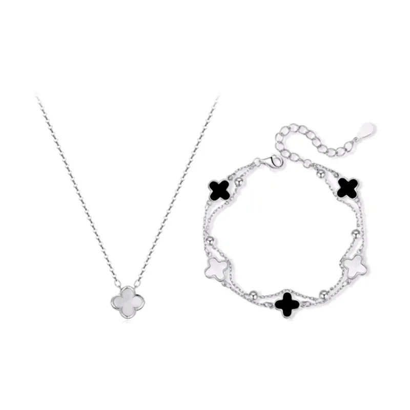 Серебряная коллекция с четырехлистным клевером (черный)
