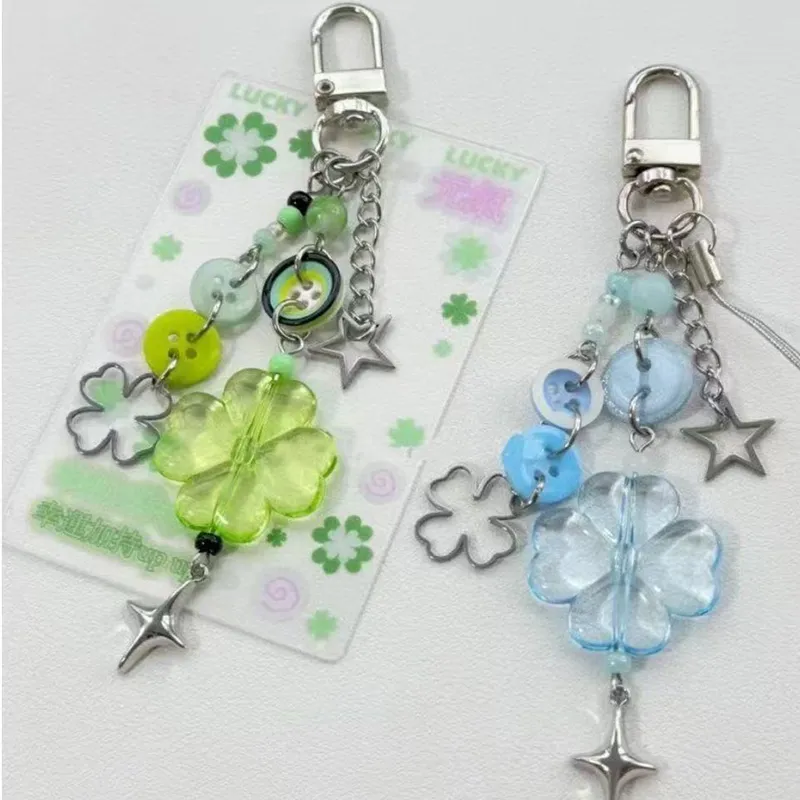 Подвеска с четырехлистным клевером, 1 пара (зеленый + синий)