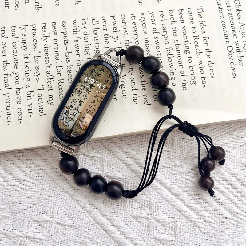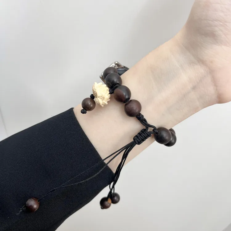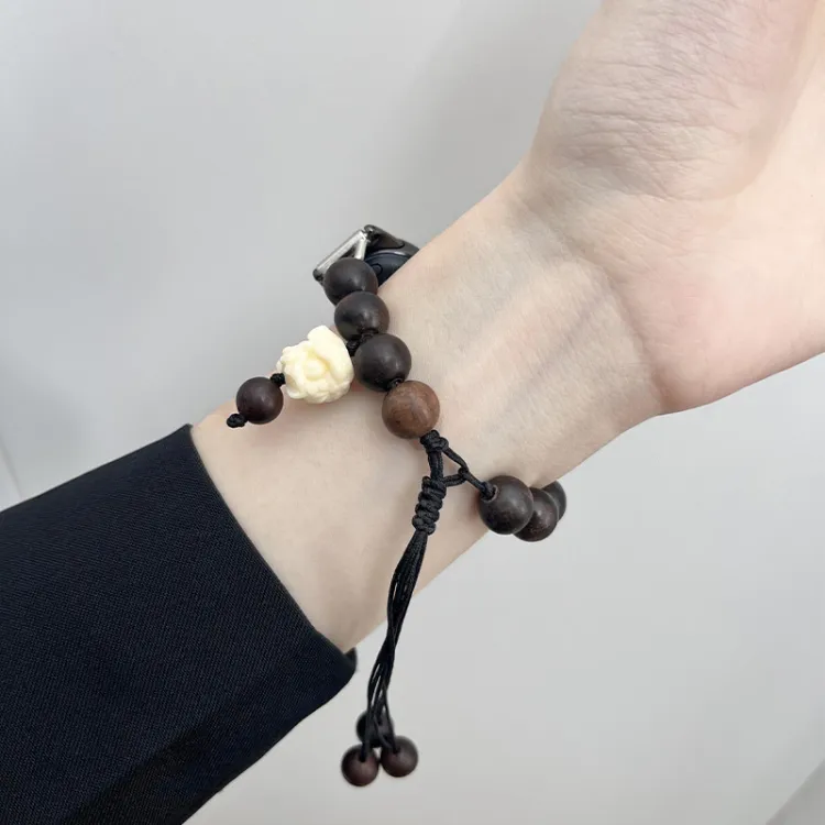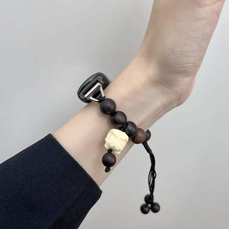 Ремешок Цвет:Вязаные ткани, эластичный шнур, черный, бусины из сандалового дерева